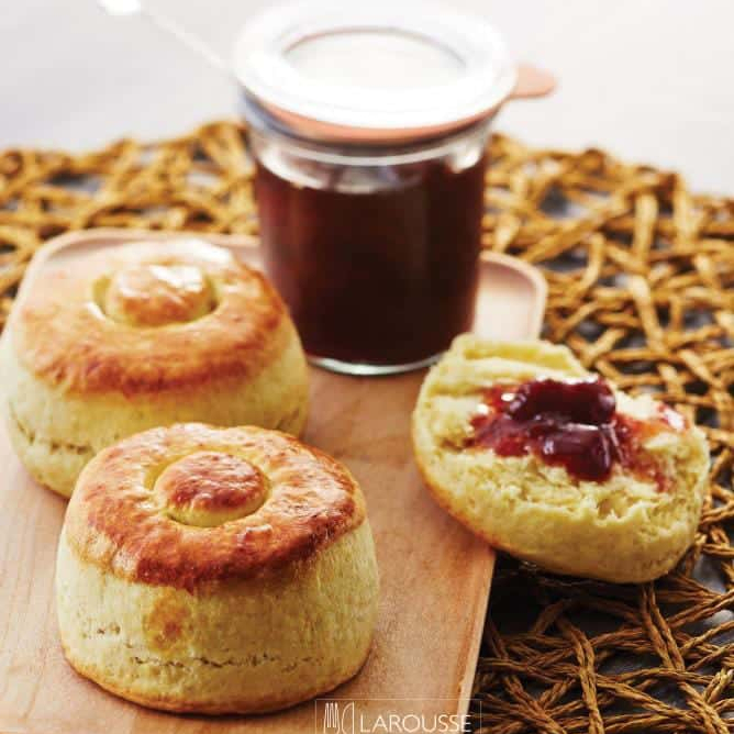DELICIOSO BISQUET RECIEN HORNEADO, ACOMPAÑADO DE MANTEQUILLA Y MERMELADA DE FRESA (A PARTE)