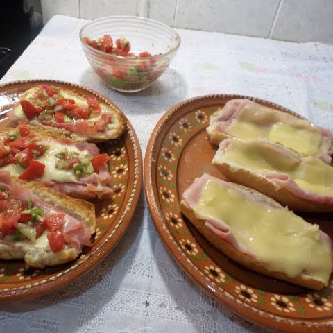 DOS MOLLETES CON QUESO MANCHEGO, NATURALES JAMON O CHORIZO