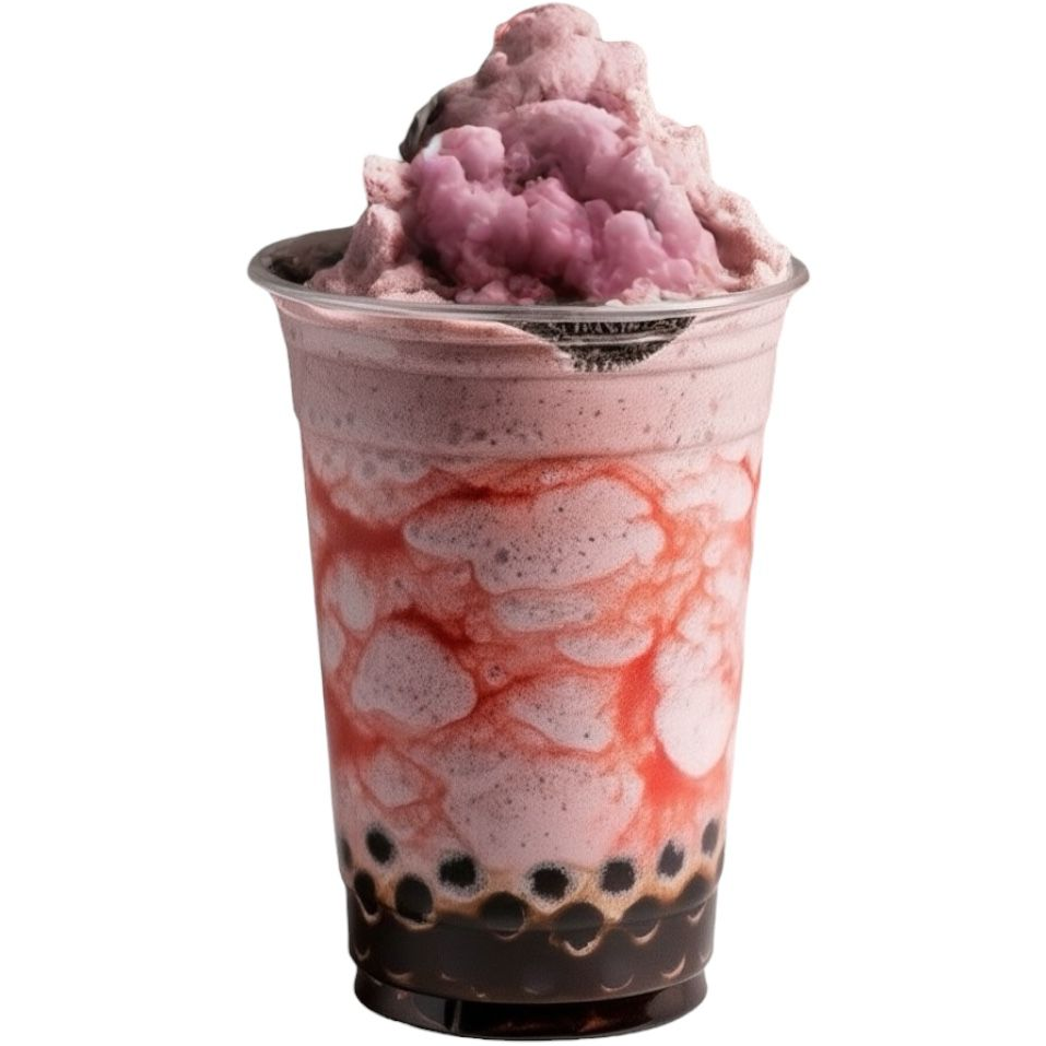 Bebida refrescante con base sabor fresa y oreo acompañado de perlas de tapioca