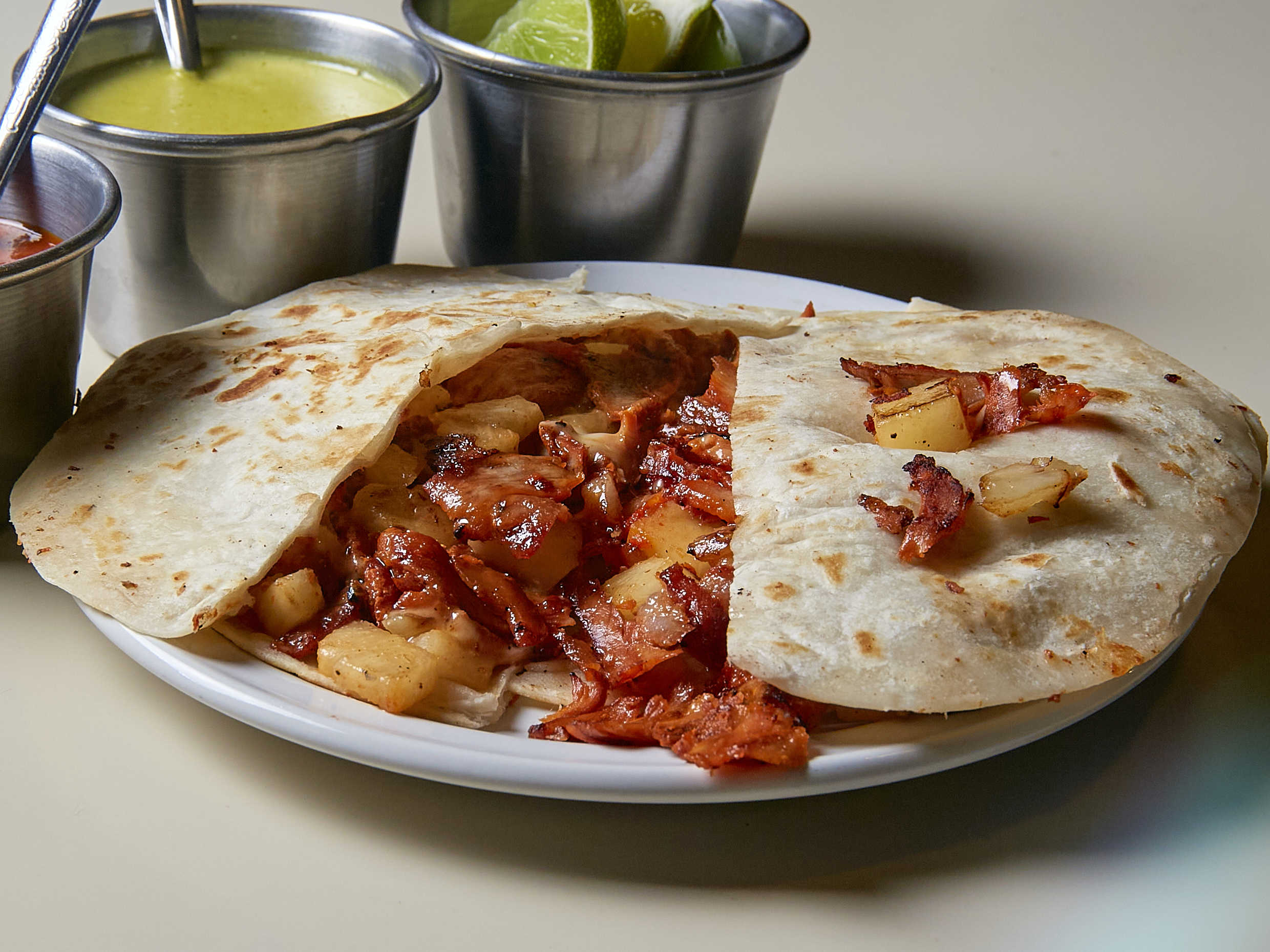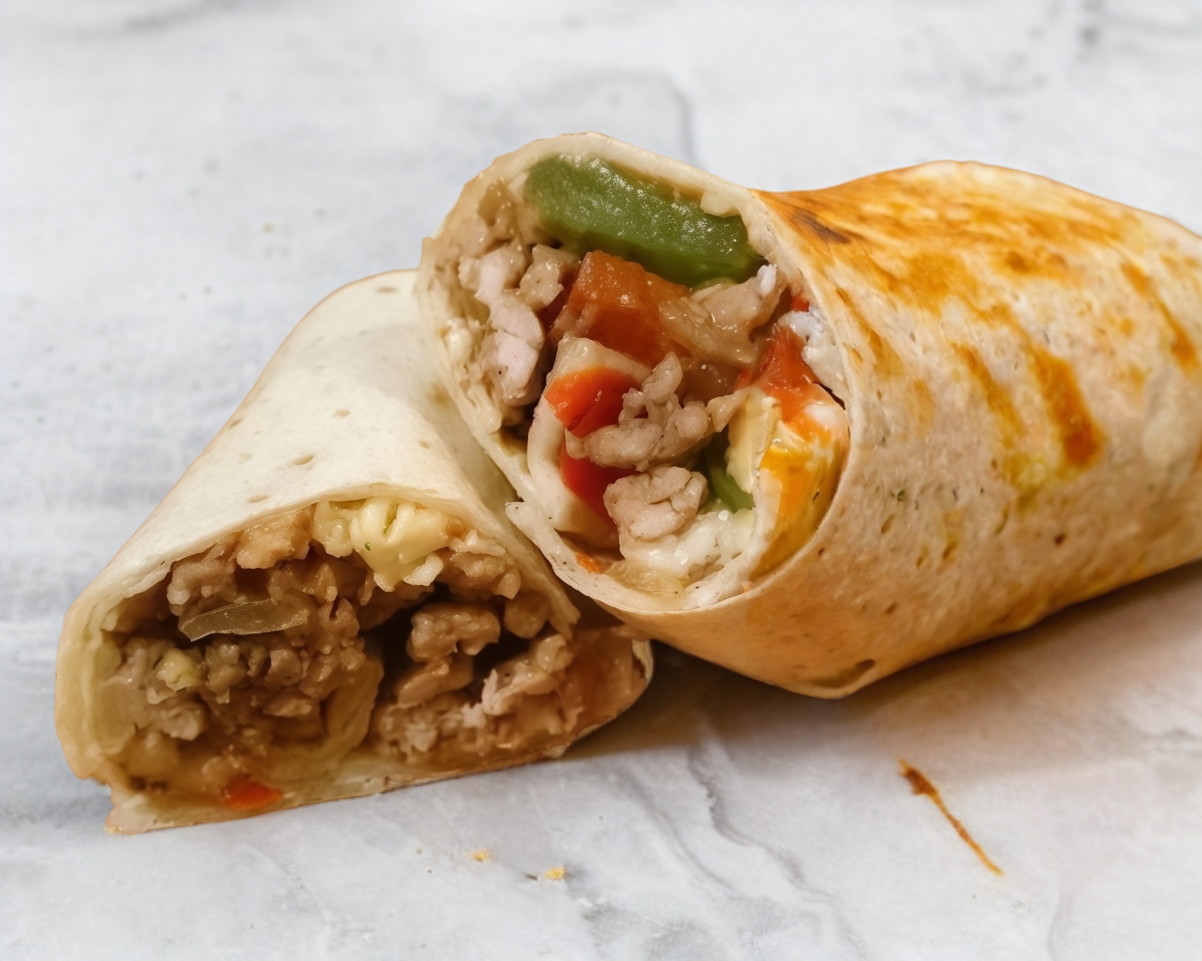 Bistec, champiñones, queso y 2 tortillas de harina.