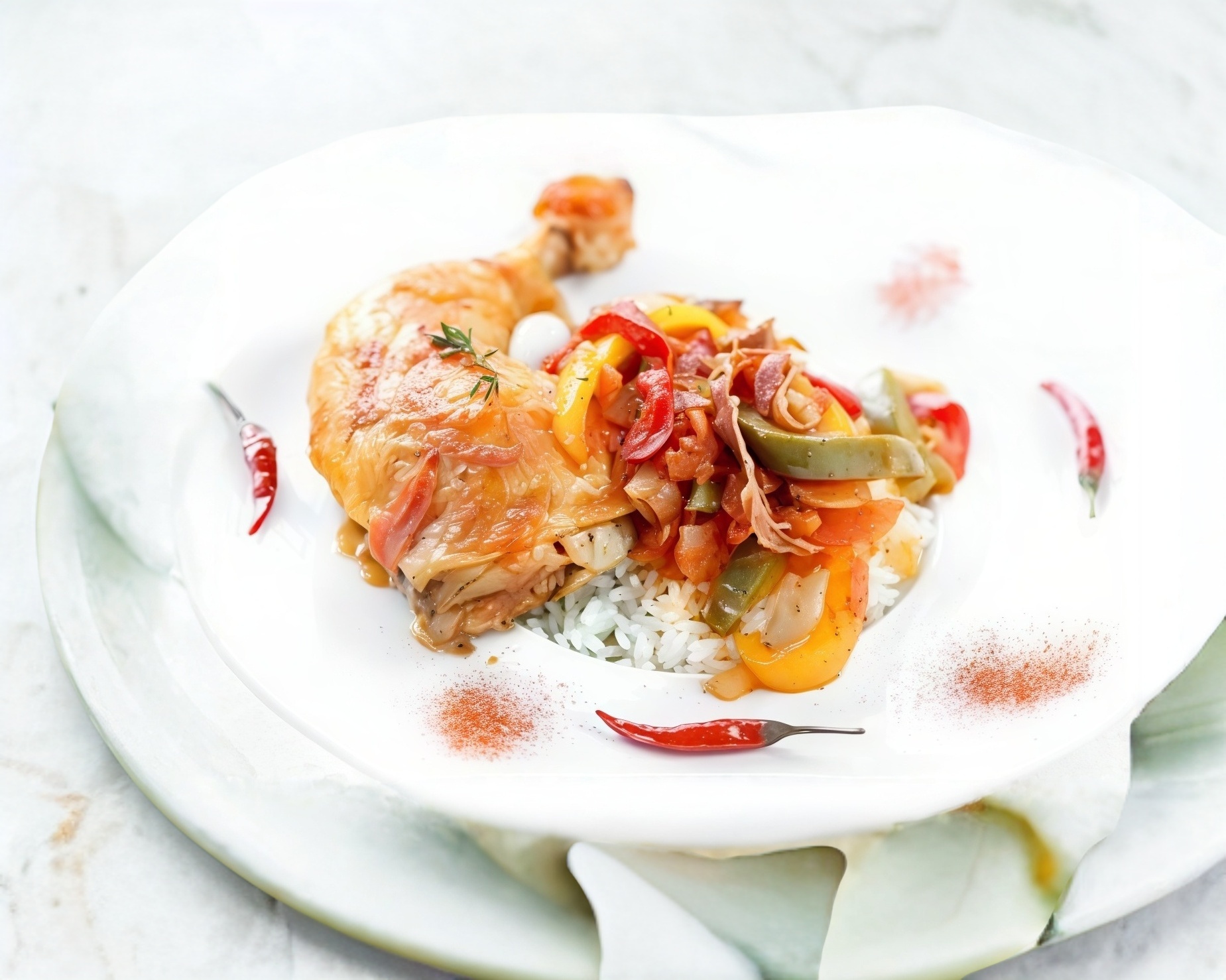 Pechuga de pollo, queso, chile morrón, cebolla, champiñones y piña.