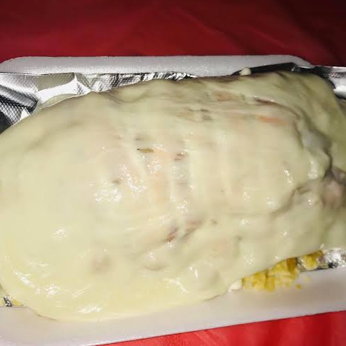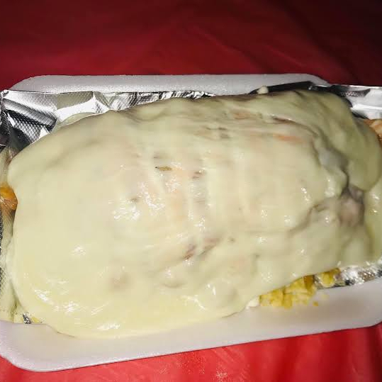 Pan, lechuga, tomate, cebolla caramelizada, carne jugosa, pollo empanizado tocineta ripio de papa salsas (rosada verde y piña) y queso fundido