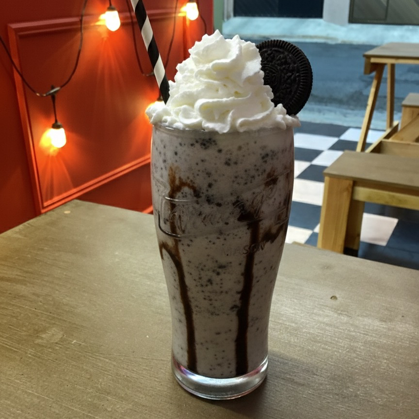 Un delicioso y cremoso batido helado que combina la textura crujiente de las galletas Oreo con el dulzor de la vainilla y la leche.