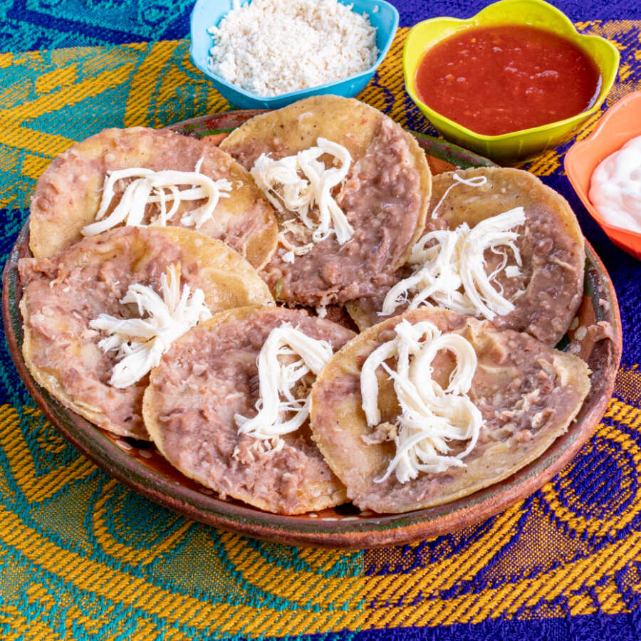 Pollo, carne, quesillo, pata o res lechuga frijol queso crema salsa 4 piezas pequeñas