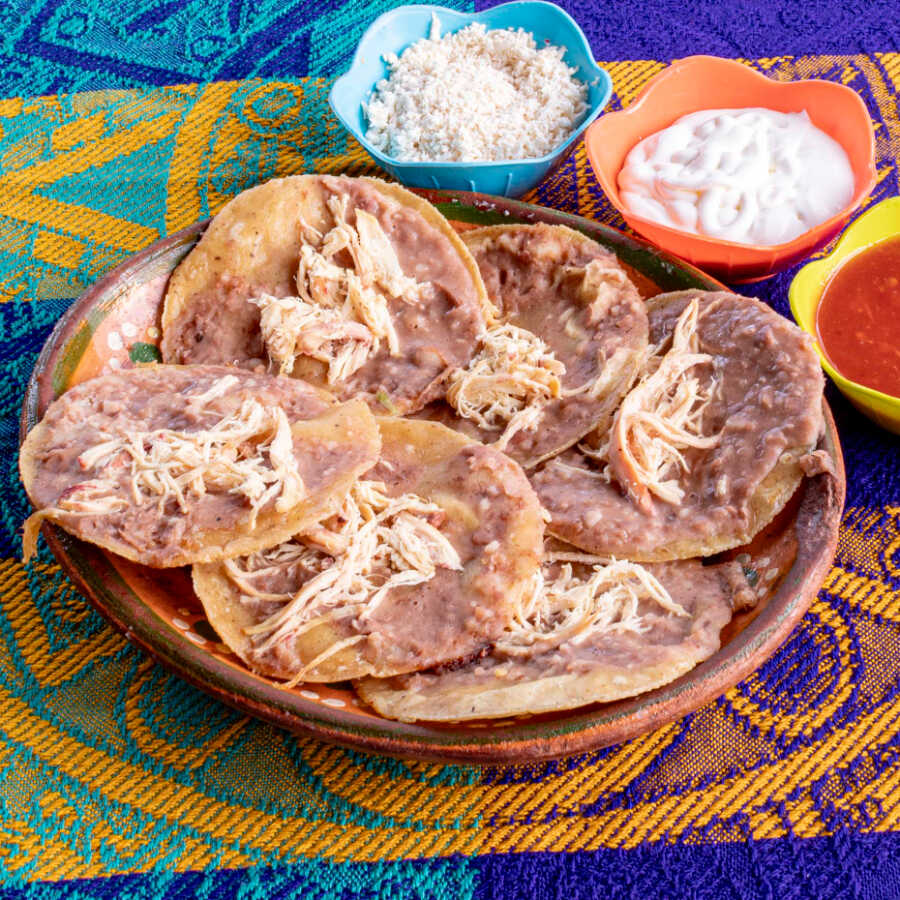 Pollo desebrada frijol lechuga queso crema y salsa 4 piezas