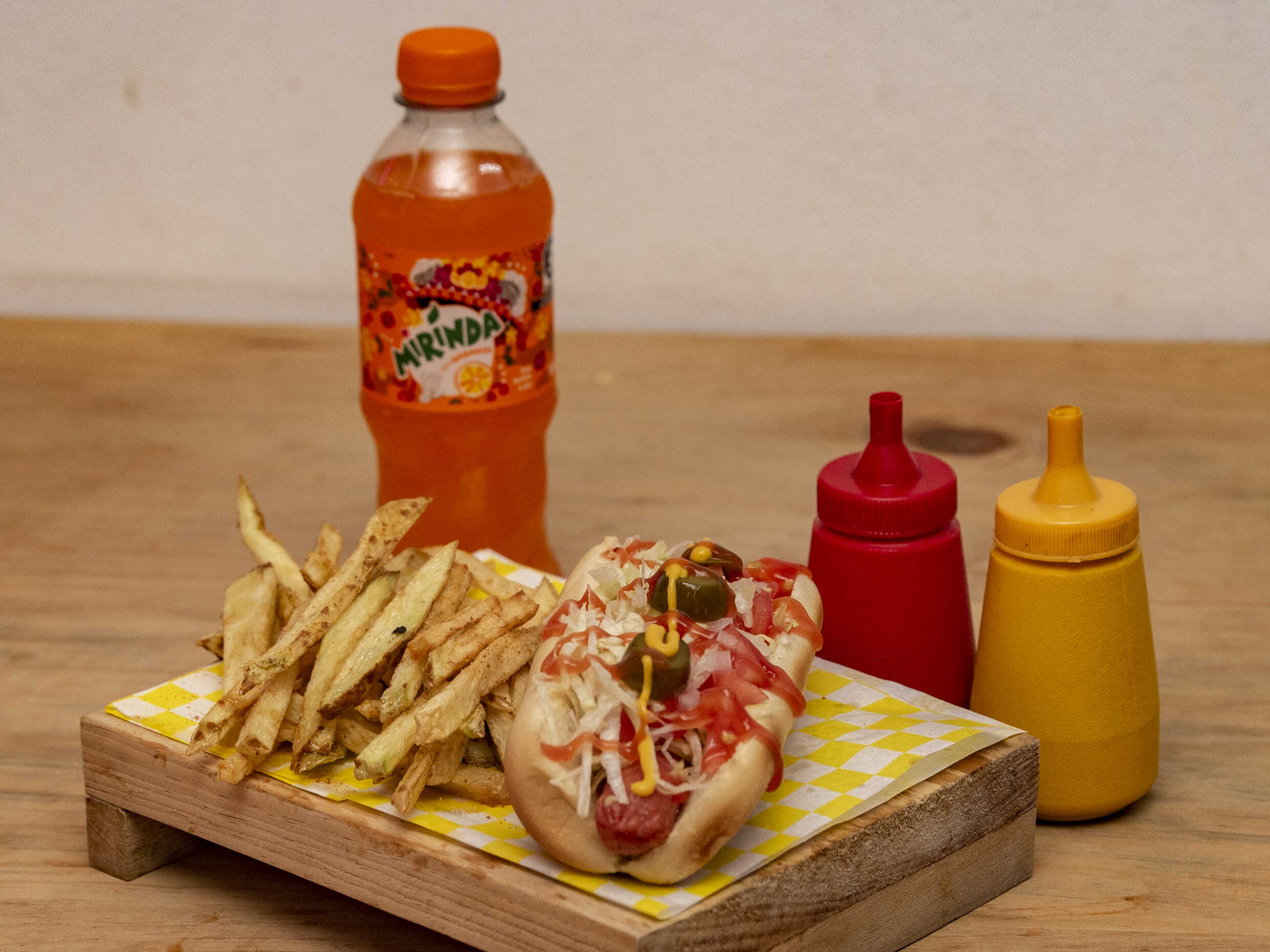 Hot Dog Clasico*1 + Porcion de papas*1 + Fanta sin azúcar 355 ml*1
