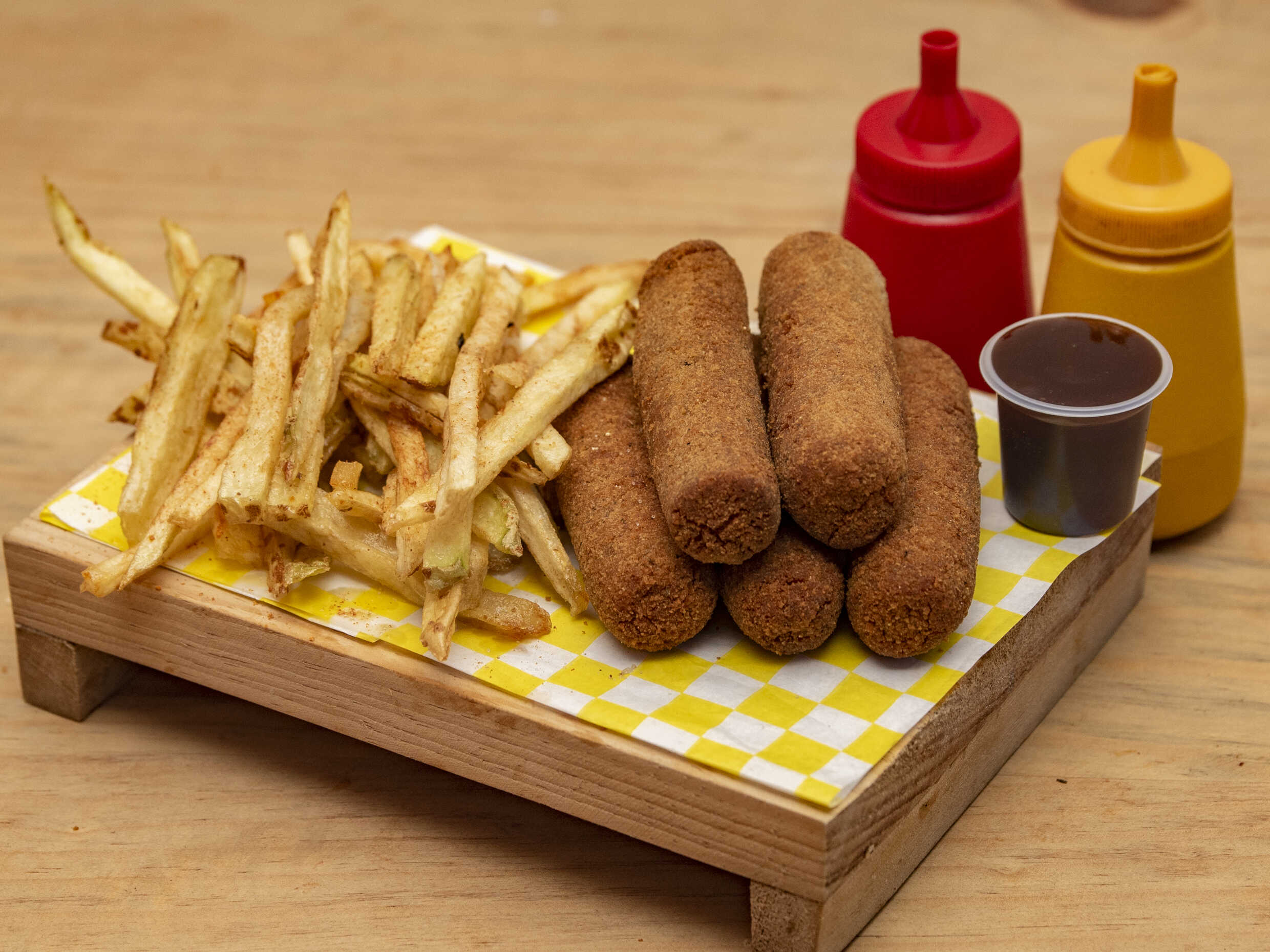 dedos de queso acompañados de papas fritas y aderezo de tu eleccion