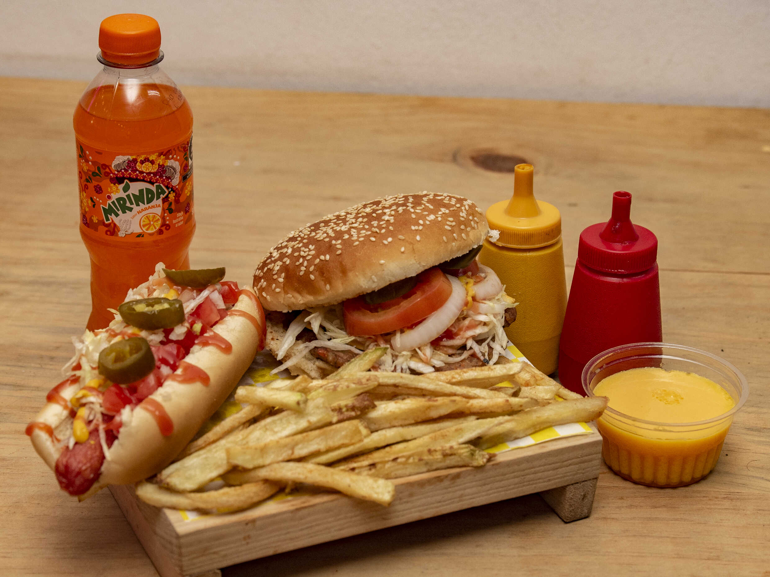 Hamburguesa Clasica*2 + Hot Dog Clasico*1 + sprite sin azucar 355 ml*1 + Sidral mundet sin azúcar 355ml*1