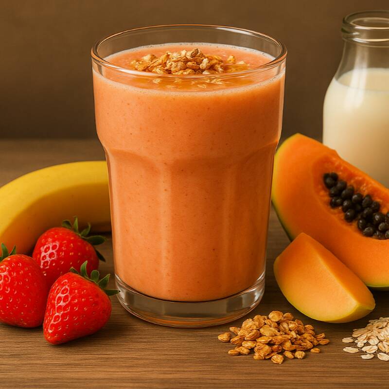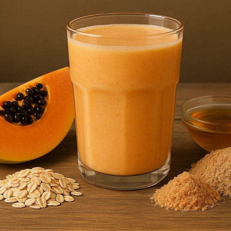 Licuado de Papaya, Avena, Miel, Almendra y Leche Deslactosada
