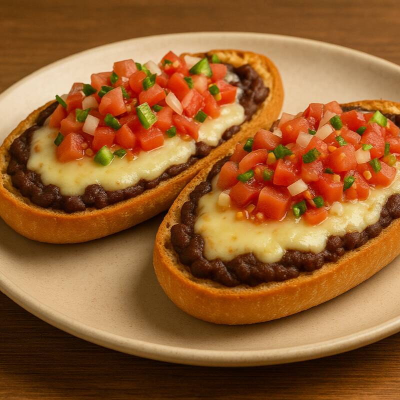 Molletes tradicionales de Frijol, Queso y Pico de Gallo