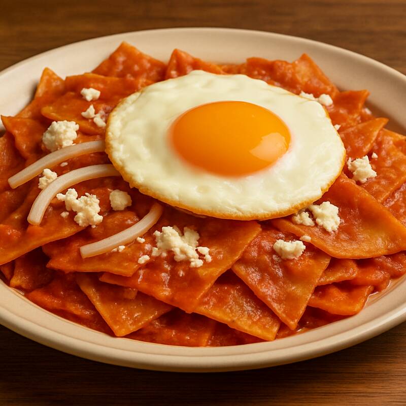 Costra Gigante de Queso Artesanal Troceada y servida estilo Chilaquiles en salsa Roja