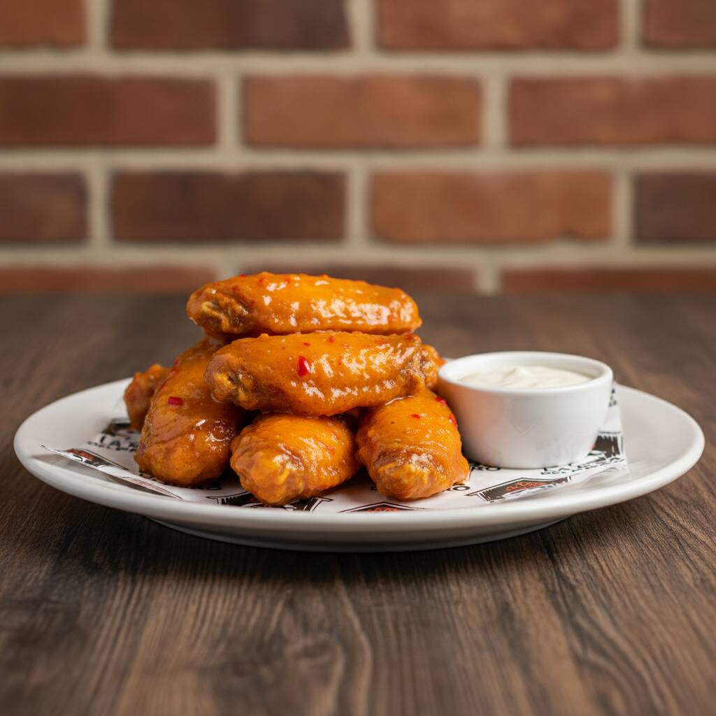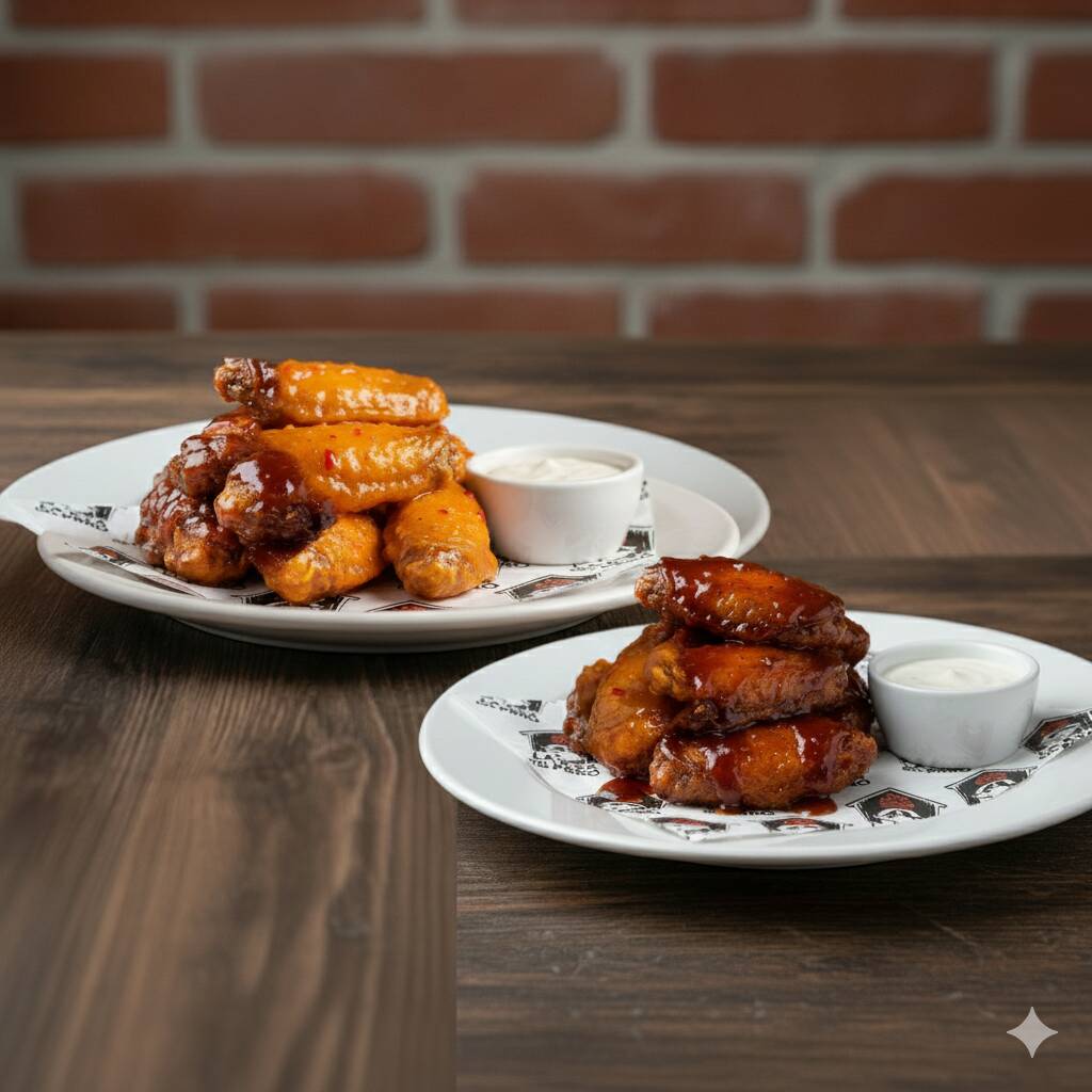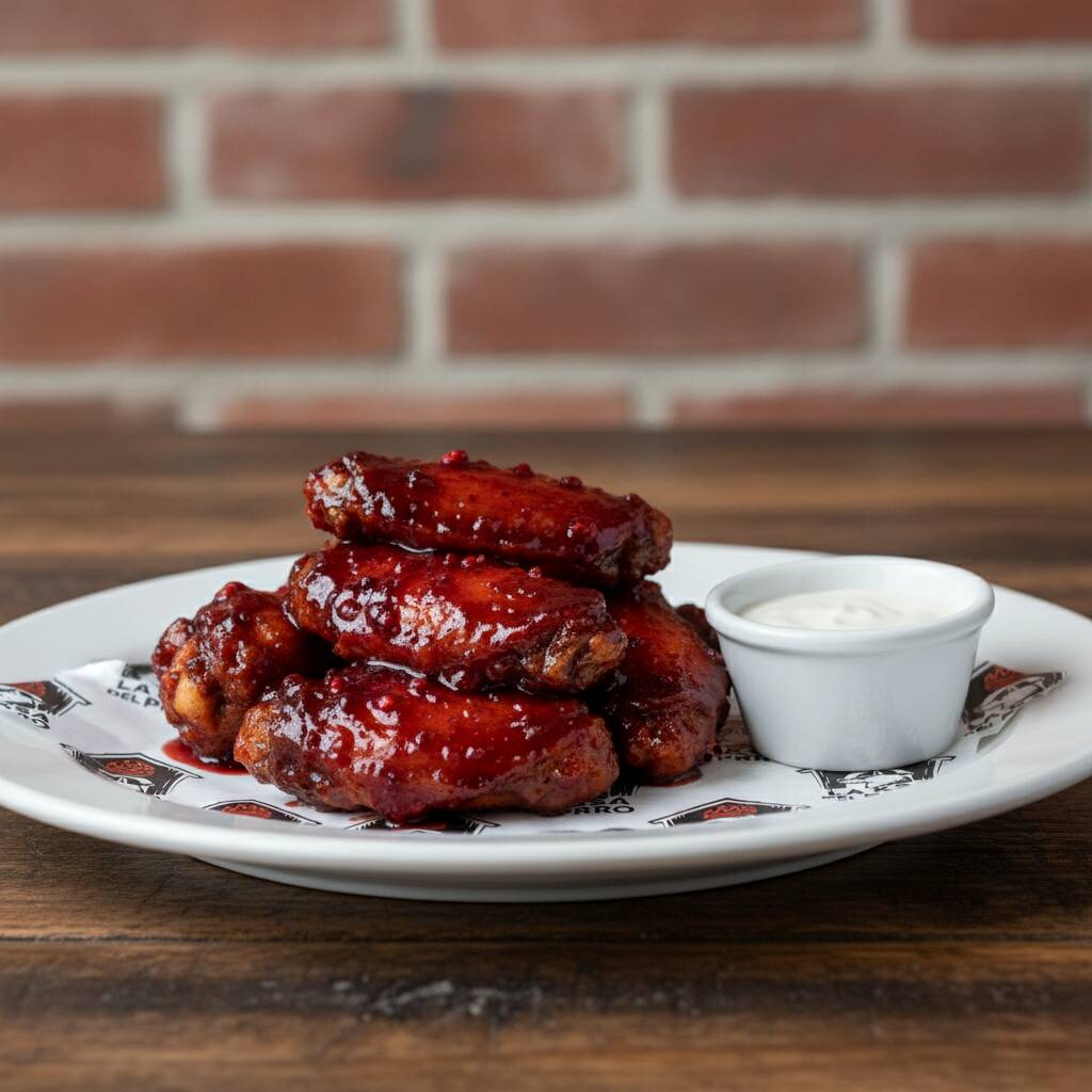 Kilo de alitas, en crudo, con hasta dos salsas a elegir, acompañadas de un dip de salsa Cocker - Ranch. (Imagen ilustrativa)