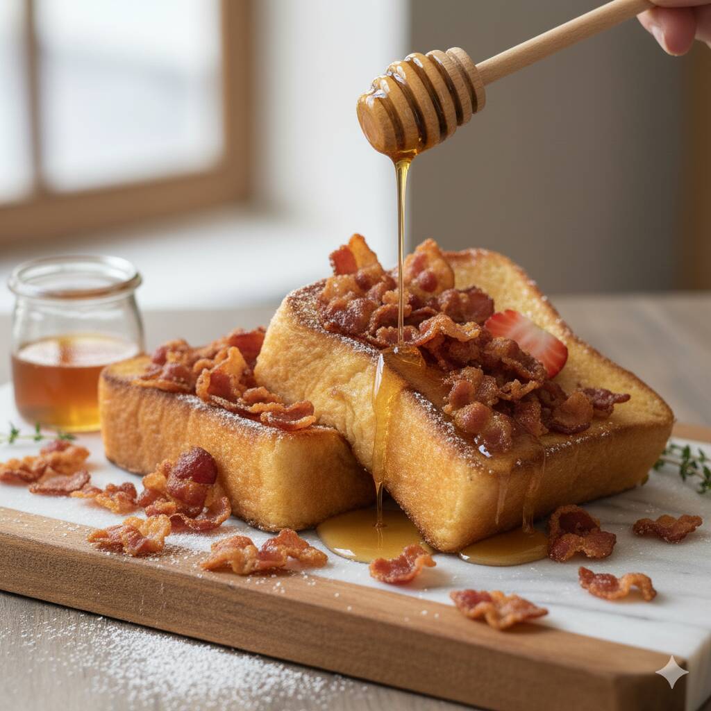Pan francés con tocino y miel de mapple. (Imagen ilustrativa)