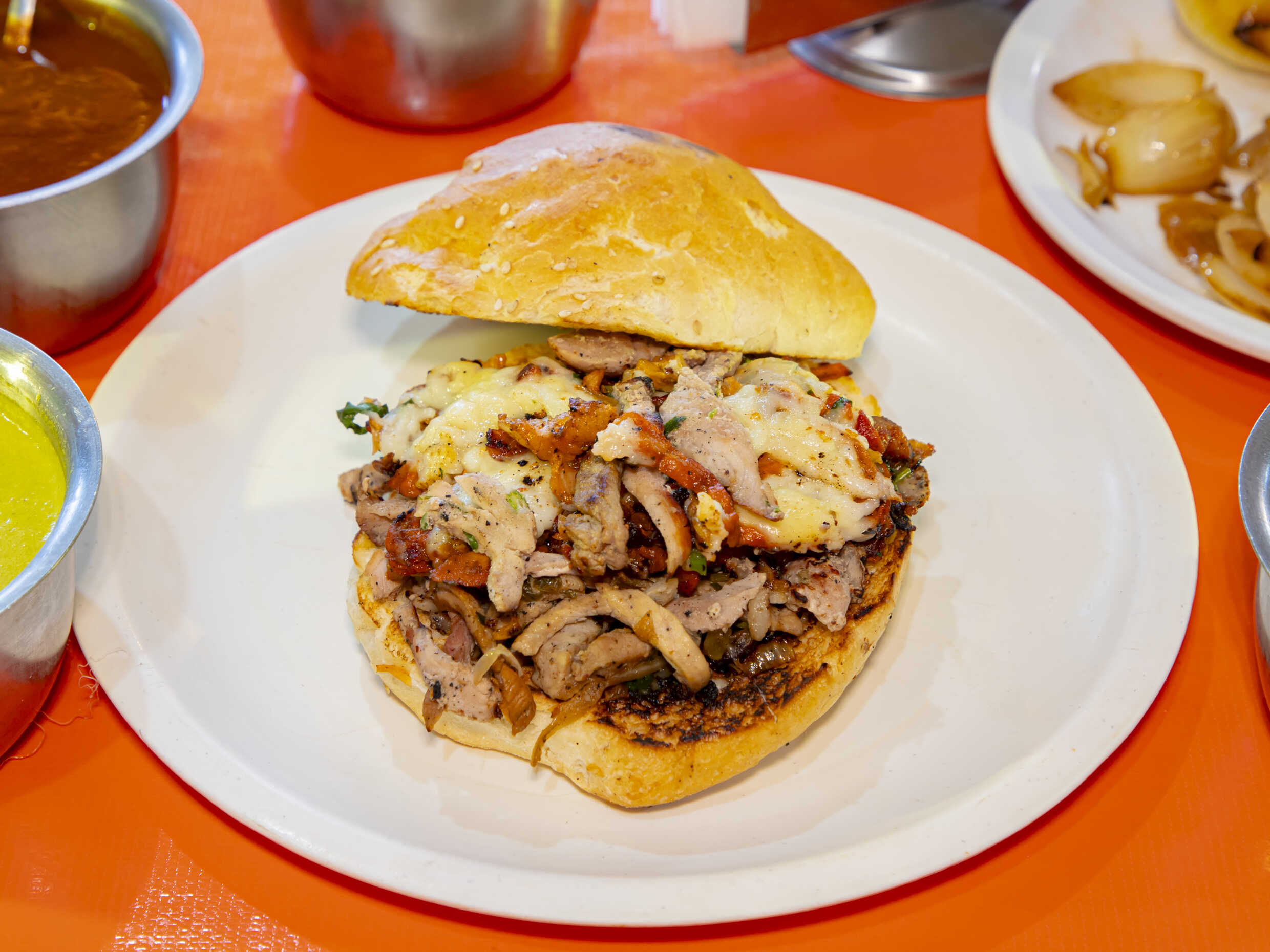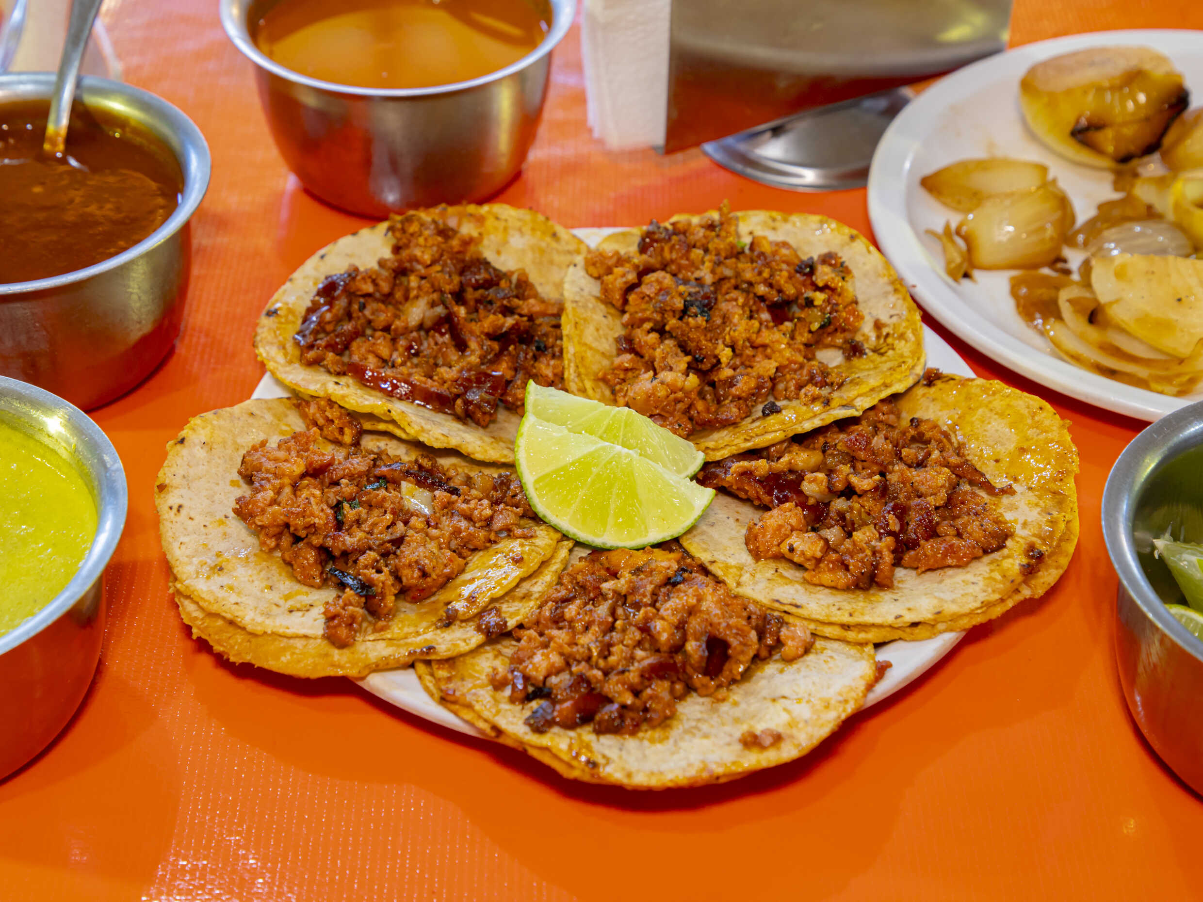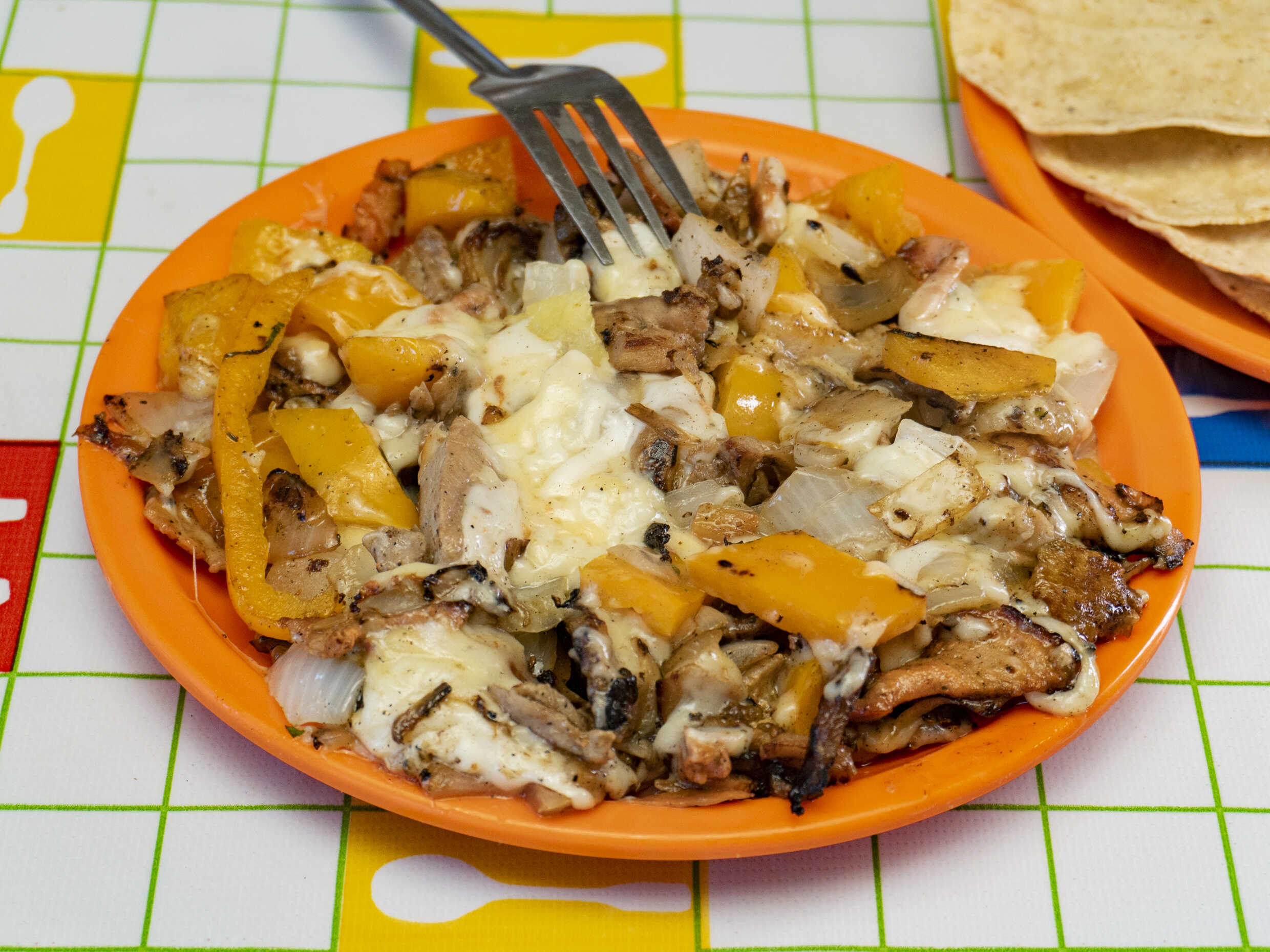Bistec, carne al pastor, jalapeños, cebolla, tocino y queso.