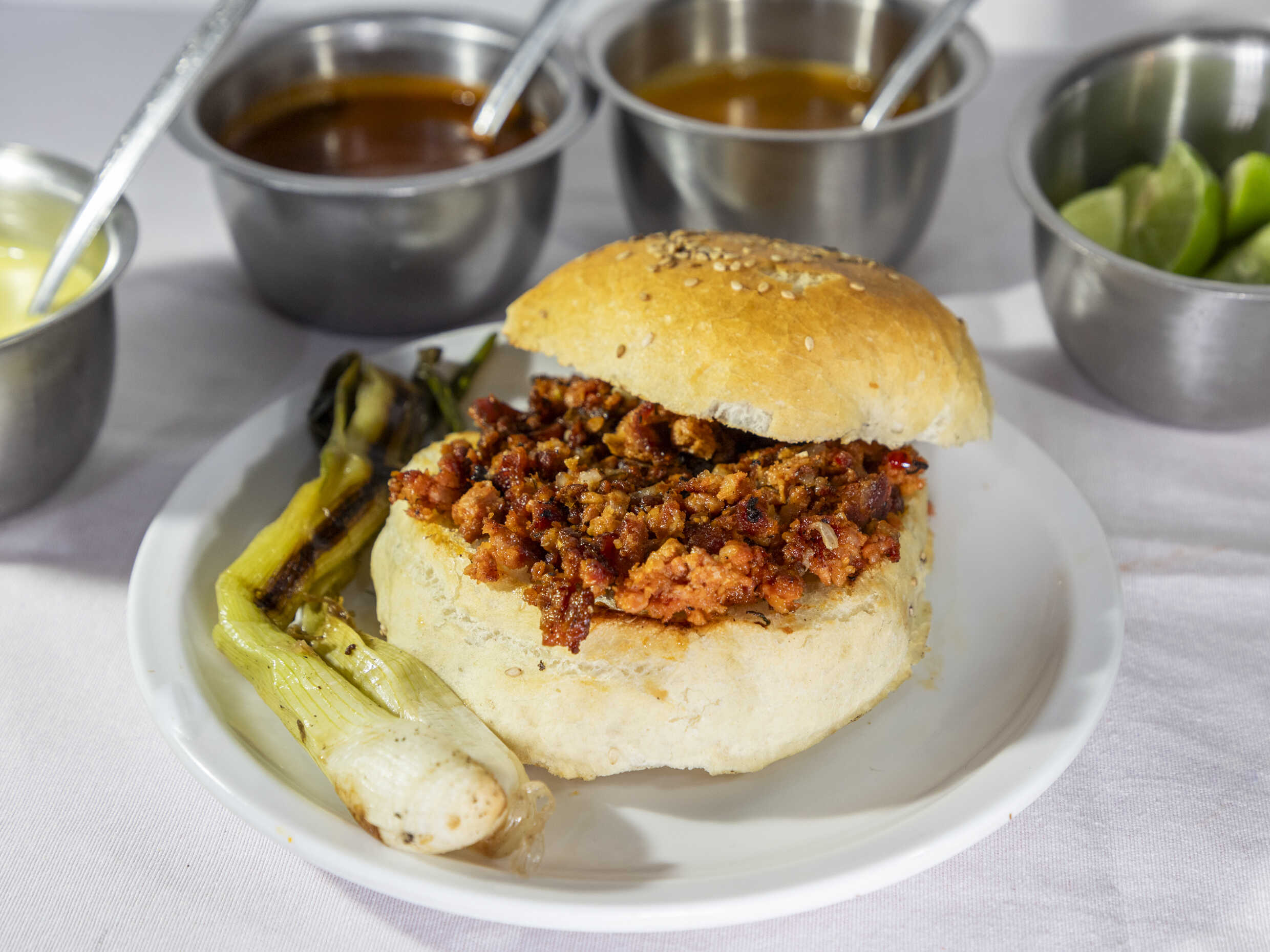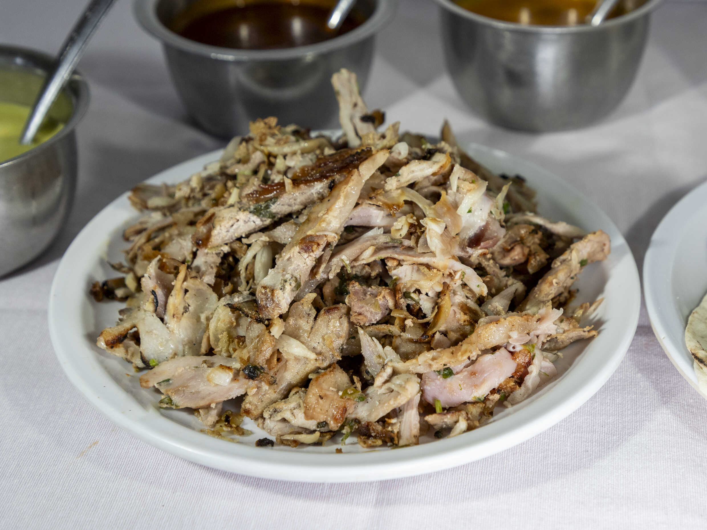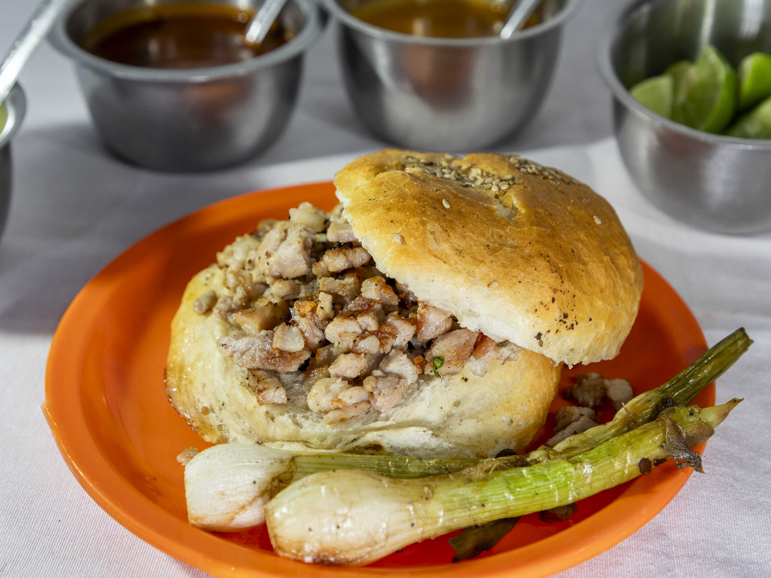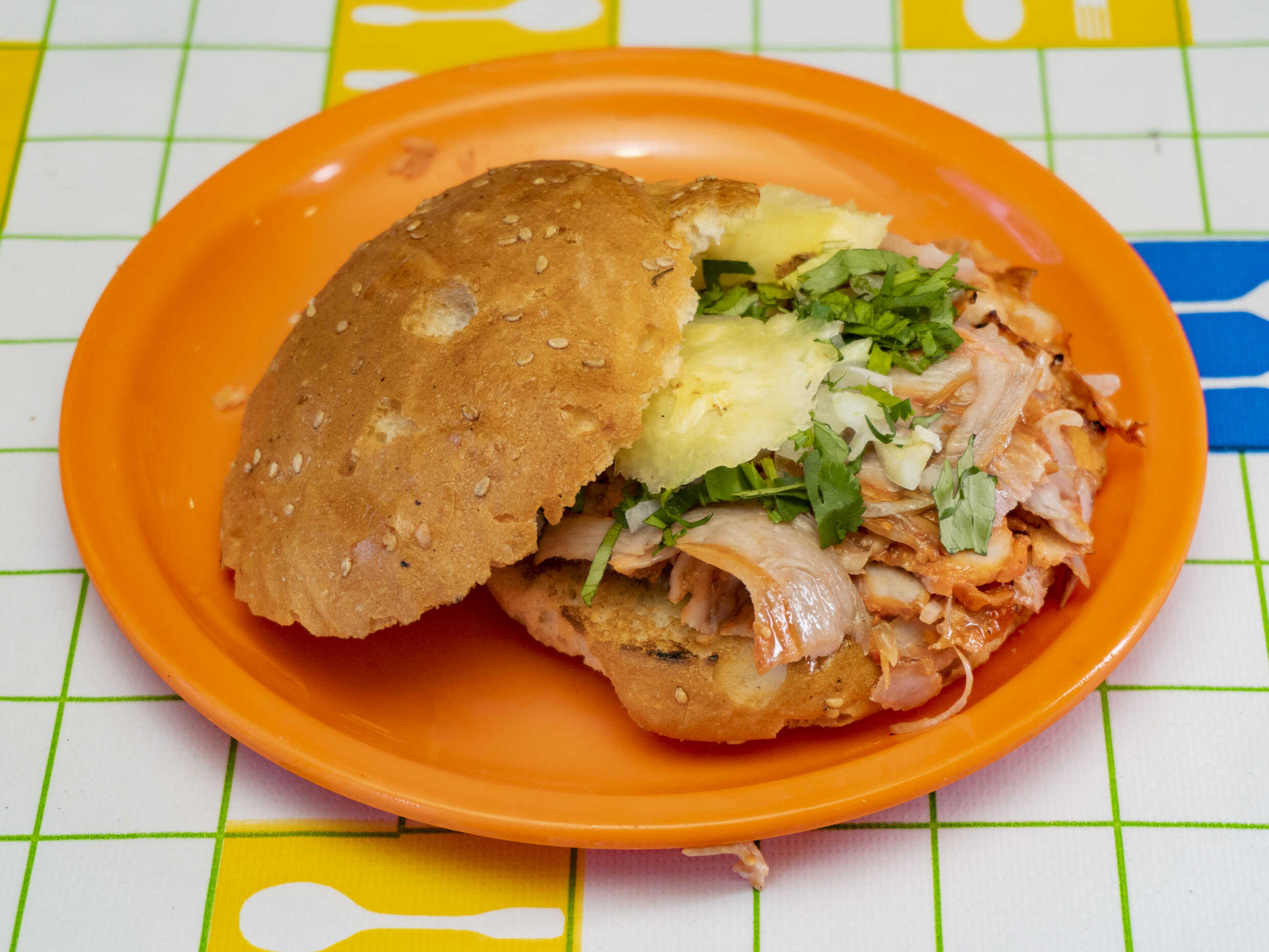 1/4 de carne pastor 2 tortillas de pan árabe 5 tortillas de maíz 1 cemita salsa limones cebollitas