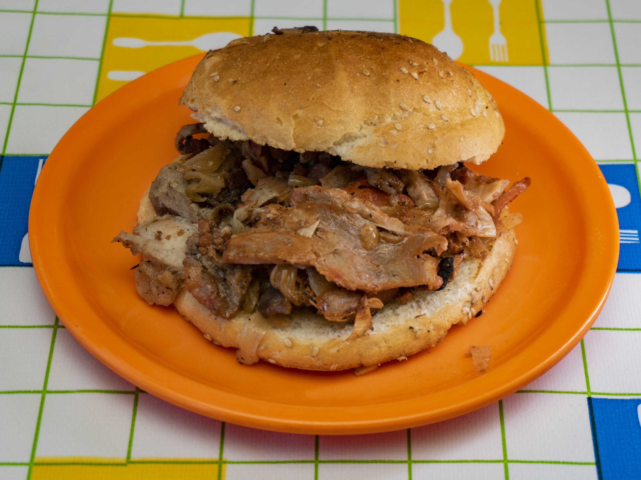 Chuleta, jamón, tocino, jitomate, cebolla y queso.