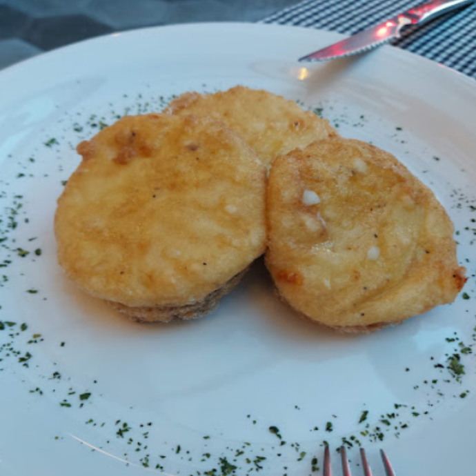 Queso mozzarella con pan capeado con harina y huevo (3 piezas)