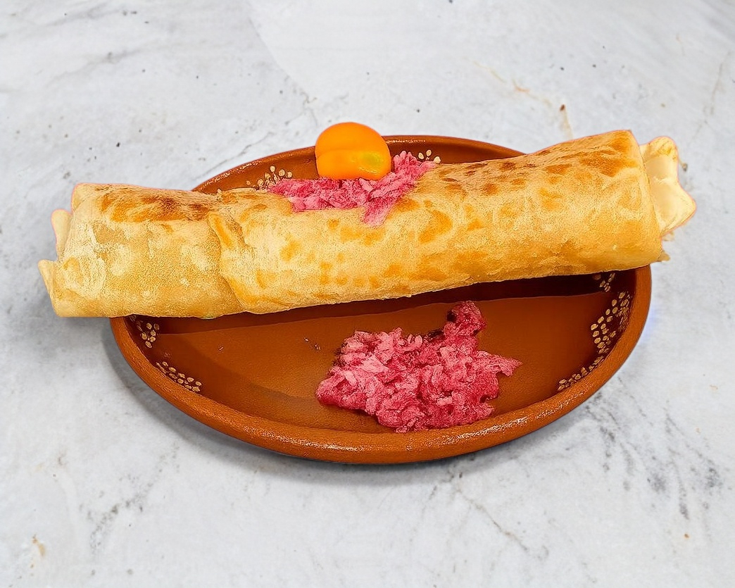 ¡La combinación perfecta! Tortilla de harina con nuestra cochinita pibil y una deliciosa costra de queso fundido que te hará querer más.