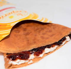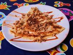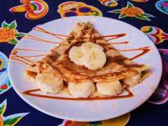 2 pzas de crepa en rollo rellenas de tu dulce favorito, fruta por fuera y el topping que te guste.
