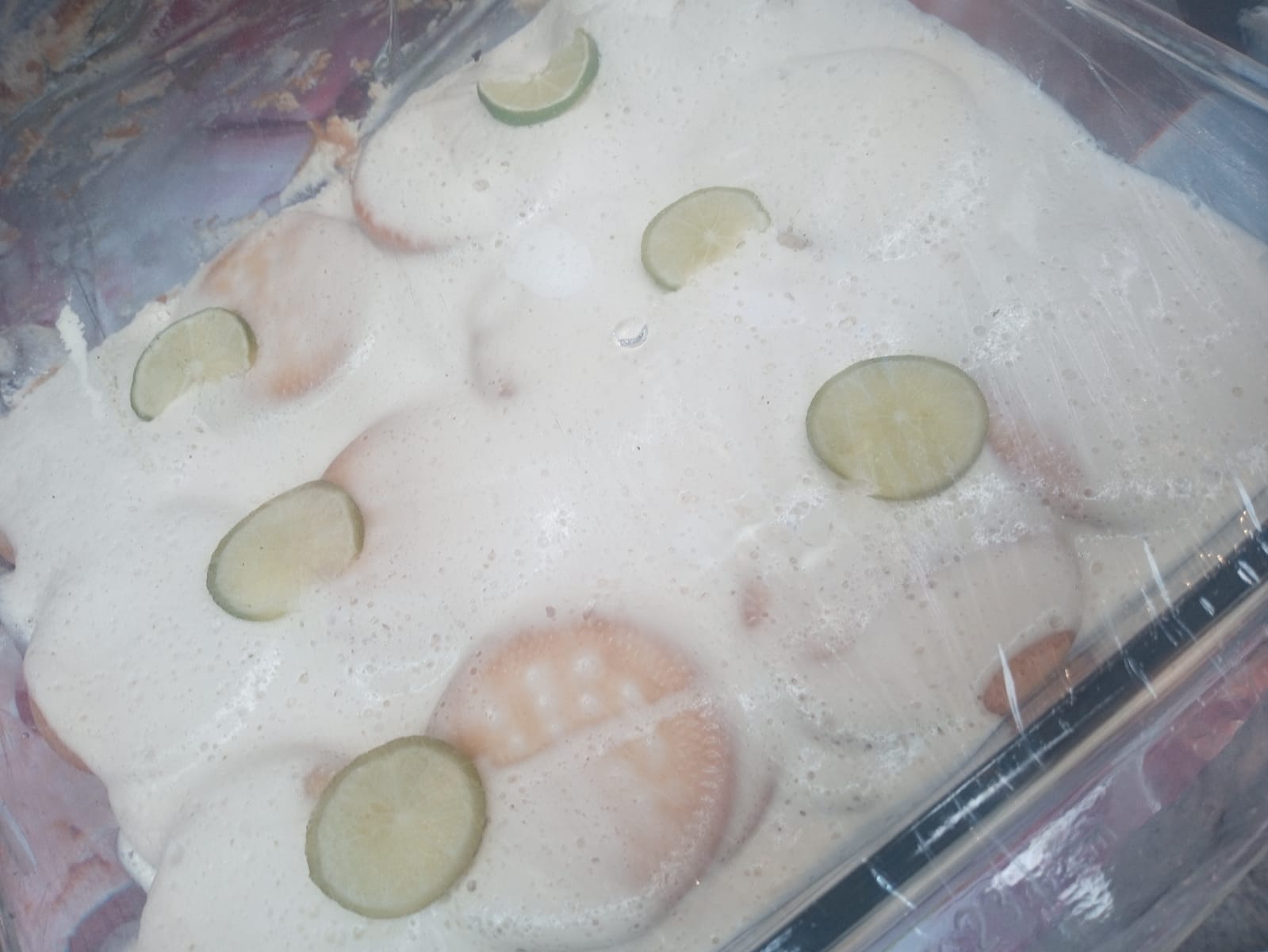 Costra de galleta, con deliciosa cobertura de chantilly sabor limón.