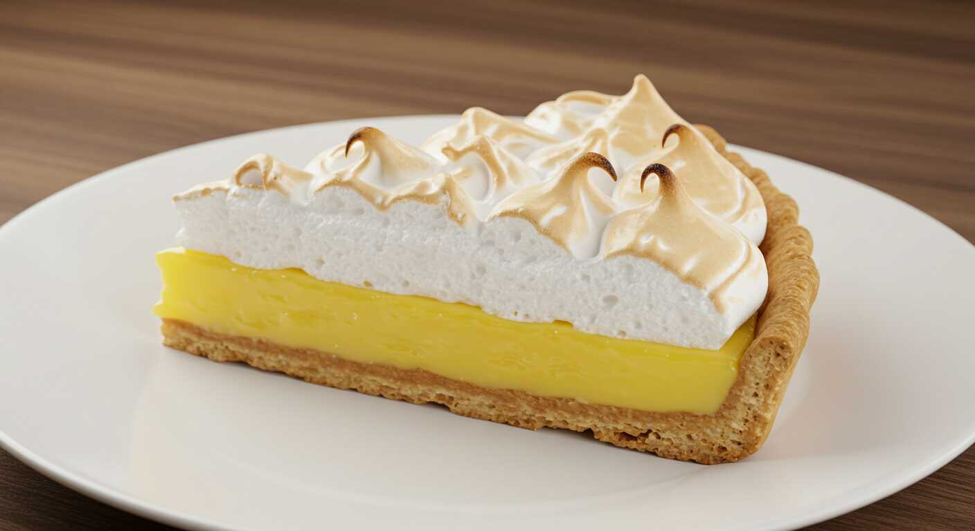 Suave y cremoso relleno de limón sobre una base crujiente de galleta, coronado con un ligero toque de merengue. Un postre fresco, dulce y cítrico perfecto para cualquier ocasión.