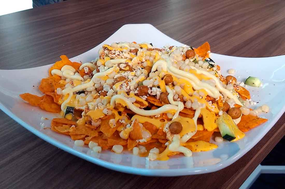 Crujientes totopos bañados con queso fundido, frijoles refritos y un toque de rajas para darle ese sabor auténtico y ligeramente picante. Un antojo mexicano perfecto para compartir.