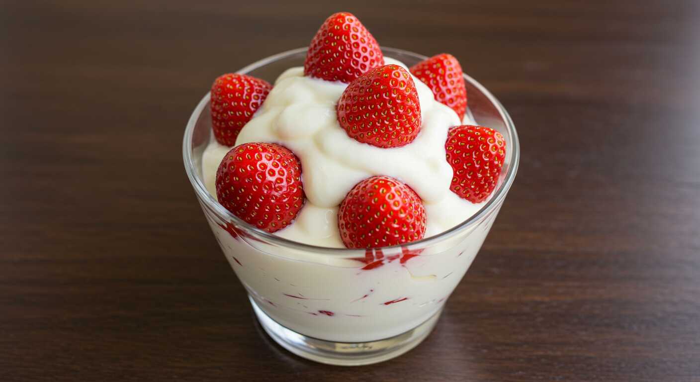 Deliciosas fresas frescas, bañadas en una suave crema dulce y ligera. Un postre clásico y refrescante que resalta el sabor natural de la fruta con un toque irresistible de dulzura.