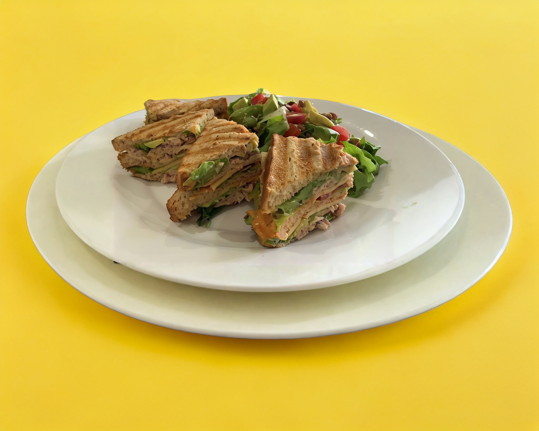 Club sandwich de atun, complementos y acompañado de la ensalada de la casa