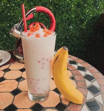 FRappe de banana con perlas explosivas de cereza