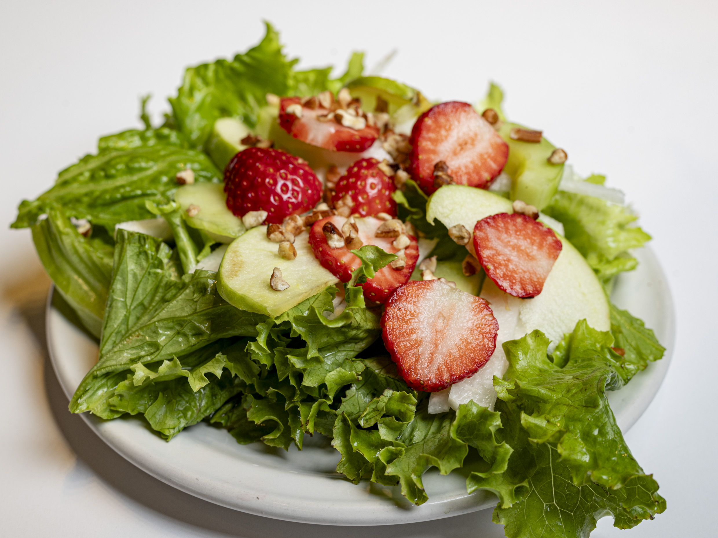 lechuga, pepino, manzana, mango, jicama , fresa y nuez