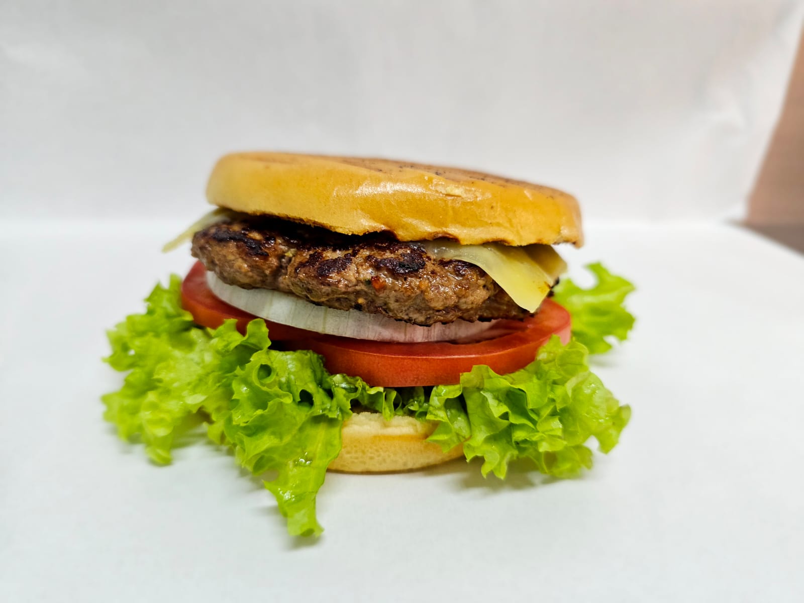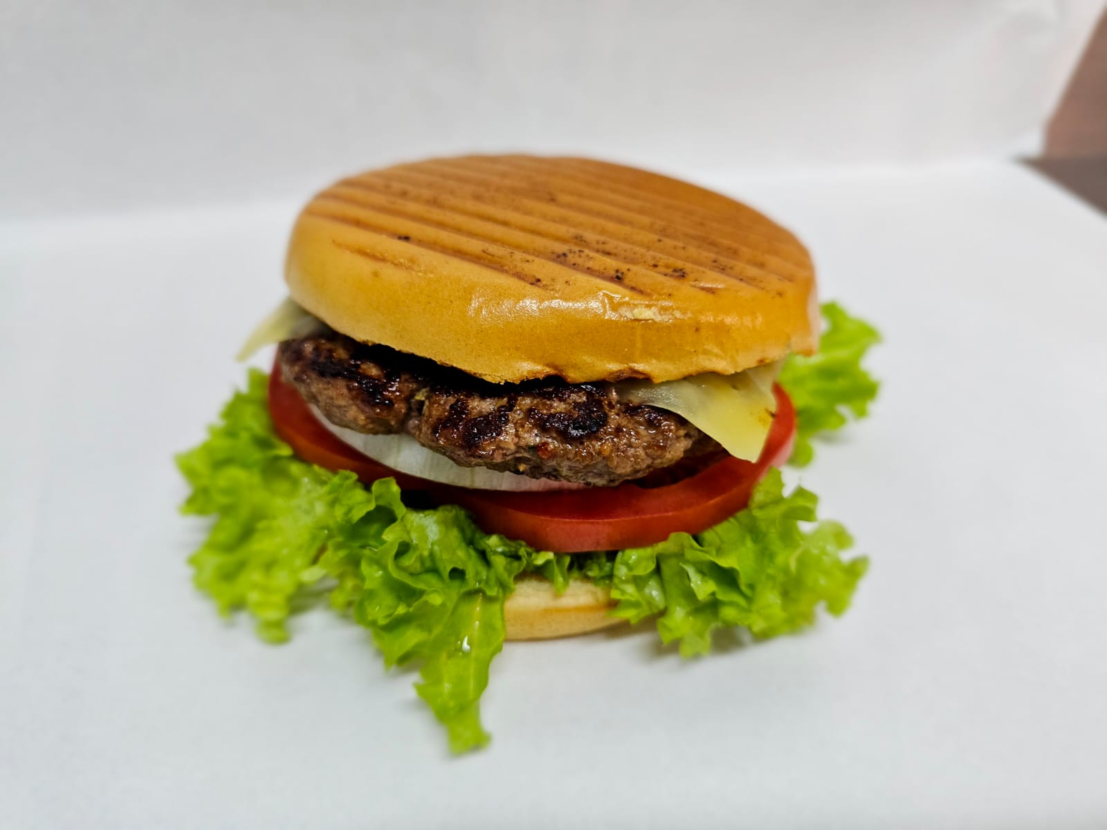 110 gr de carne con lechuga, jitomate , cebolla y queso amarillo. acompañado de papas a la francesas.