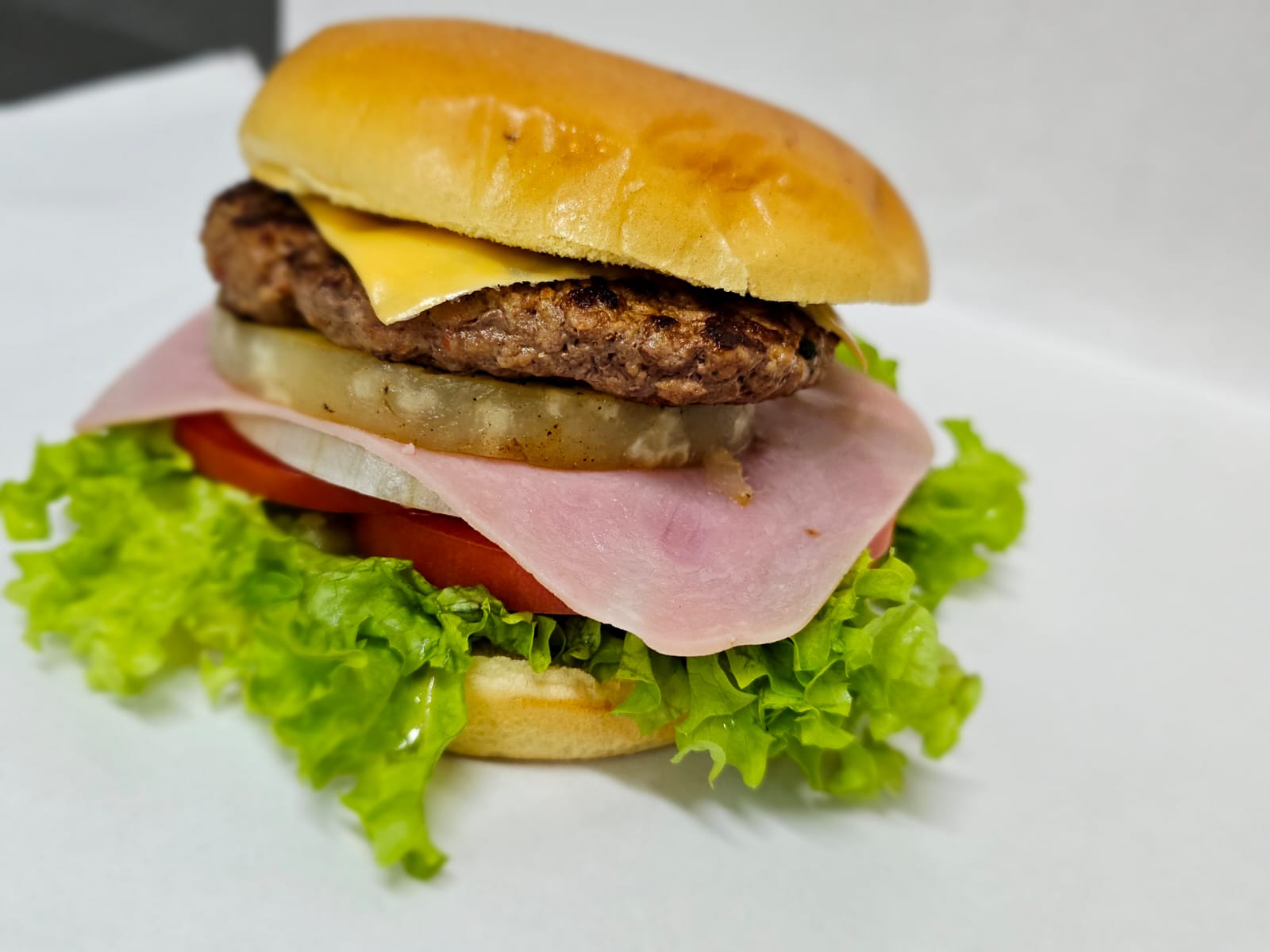 200 g De carne, queso gouda, lechuga, jitomate y cebolla. acompañada de papas a la francesa
