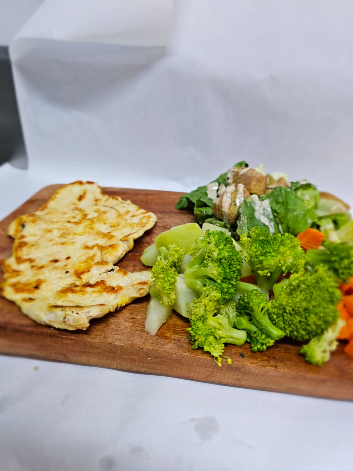 pechuga de pollo, champiñones, pimiento, cebolla y queso con tortillas de maiz.