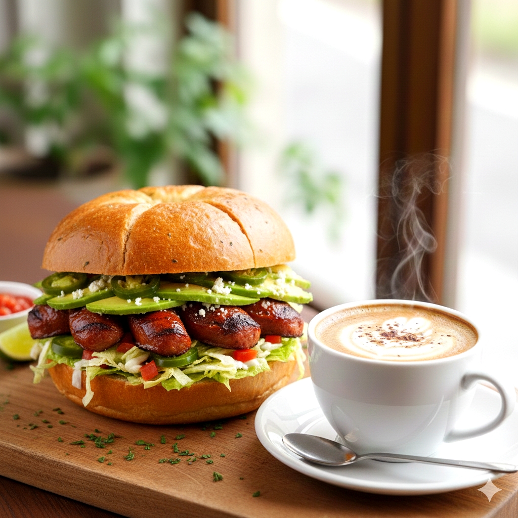 Salchicha frijoles mayonesa aguacate jitomate cebolla rajas cafe.