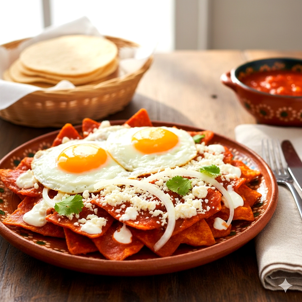 Combo Chilaquiles Rojos Pollo Deshebrado