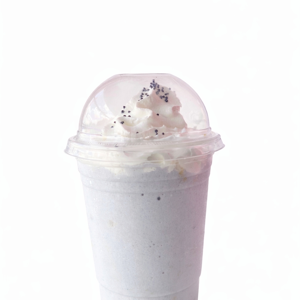 delicioso frappe sabor taro, mezclado con leche, hielo molido y crema batida