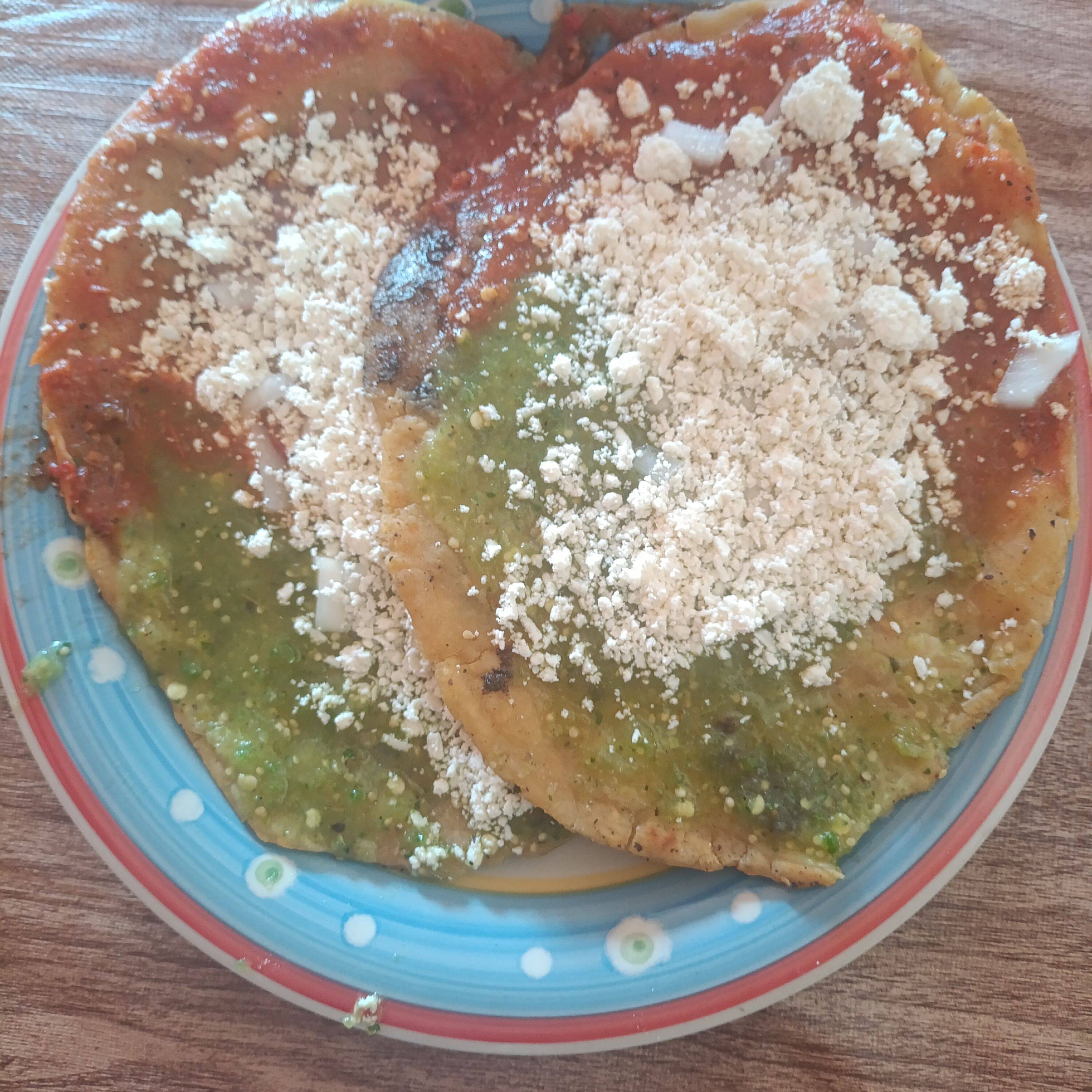 Deliciosa memelas con salsa ,cebolla y queso