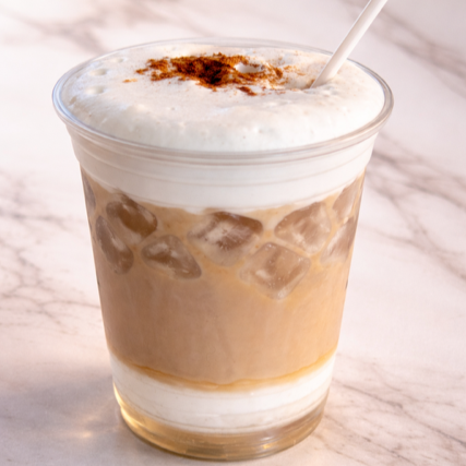 Capuchino frio a base de leche entera, con un toque de vainilla francesa ya endulzado
