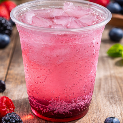 Refrescante soda Italiana, a base de agua mineral con el balance perfecto de jarabe de frutos rojos