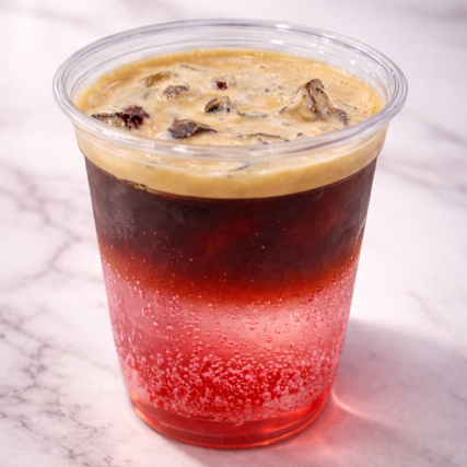 Bebida energetica, a base de agua tónica con el toque justo de frutos rojos y un shot de espresso
