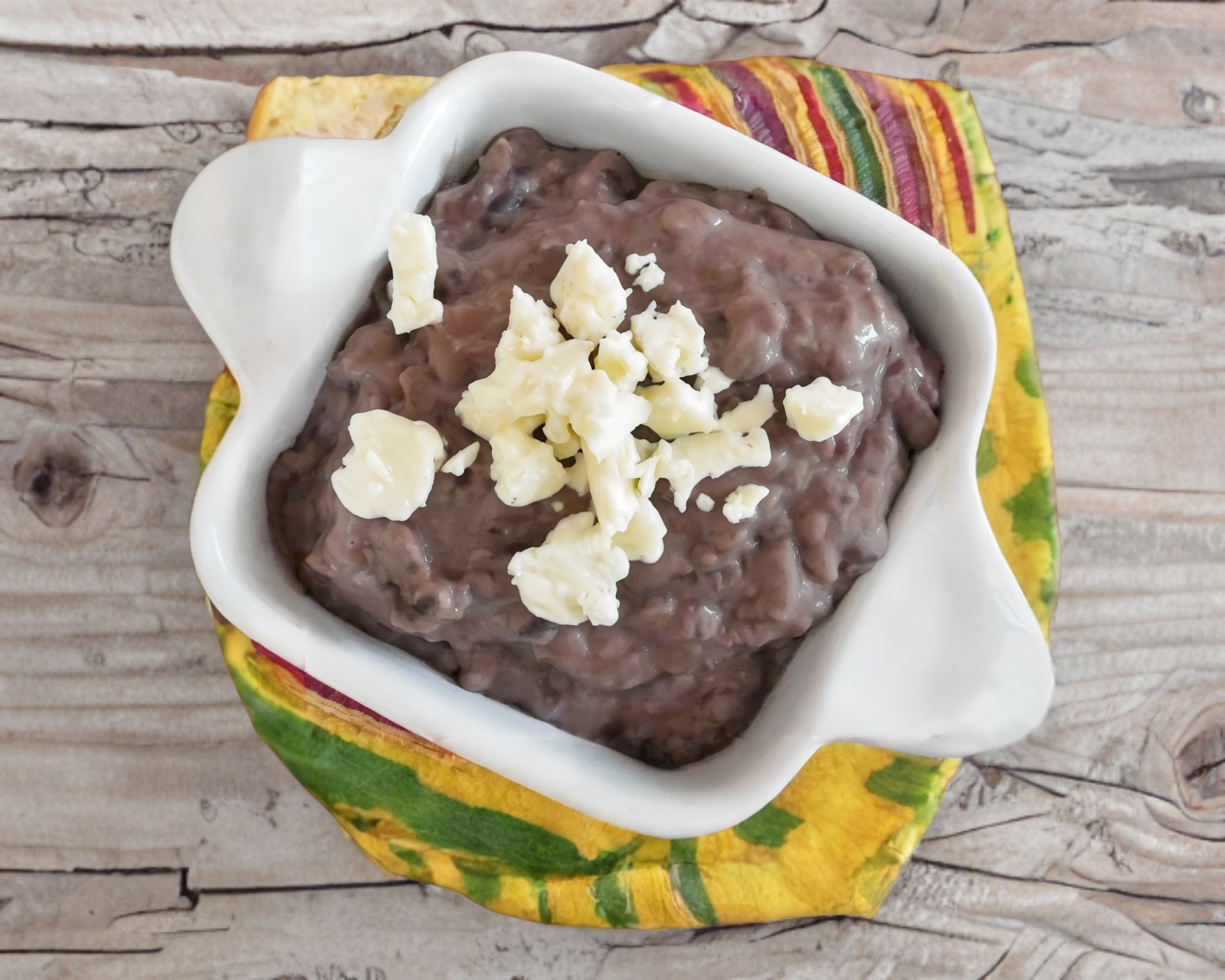 Acompañados de frijoles refritos adornados con queso y totopos.