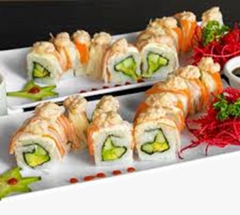 PD: Por dentro queso crema, aguacate, pepito y cangrejo, Por fuera ajonjoli y acompañado de salsa de soya. 10 bocados se sushi.