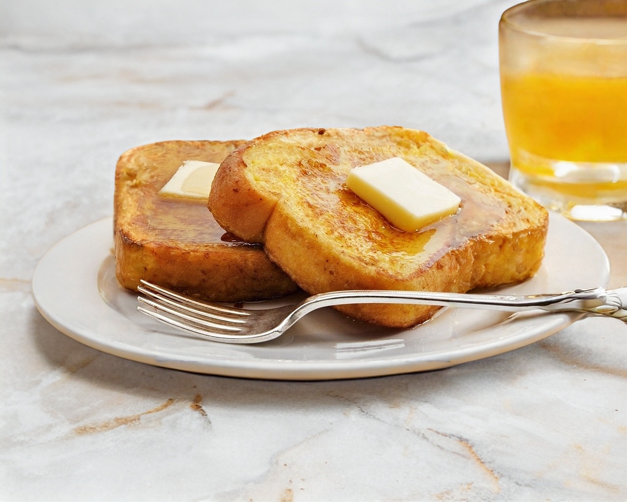 2 rebanas de pan de caja artesanal marinado y frito bañado en azucar canel , acompañado del topping de tu preferencia