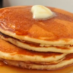 hotcakes esponjosos sabor vainilla 3 piezas con miel , lechera o mermelada