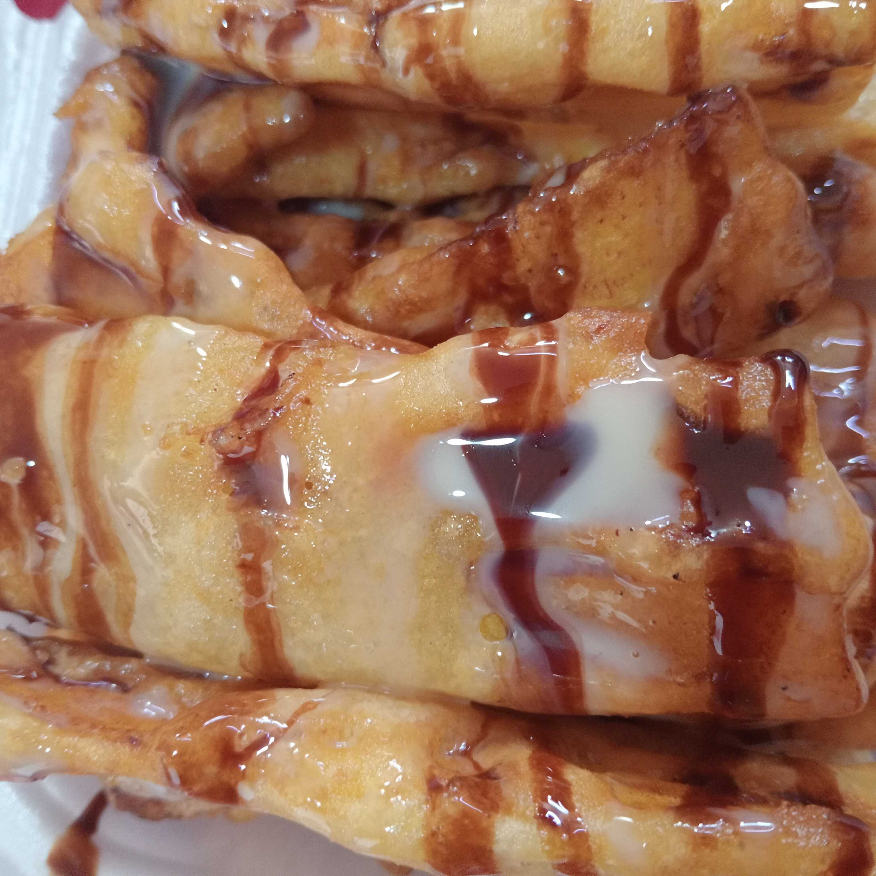 Platanito frito con lechera y chocolate o mermelada de fresa