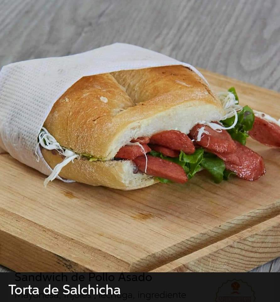 Con milanesa, jamón, salchicha, frijoles, mayonesa, lechuga, quesillo, jitomate y aguacate.