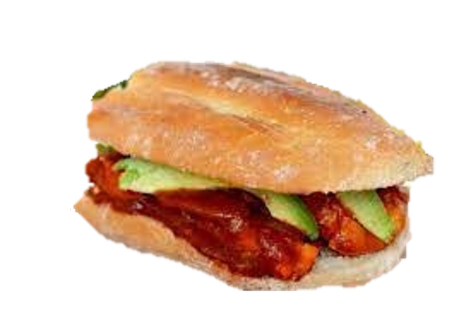 Pollo asado, frijoles, mayonesa, tocino, queso amarillo, jamón, jitomate y aguacate.
