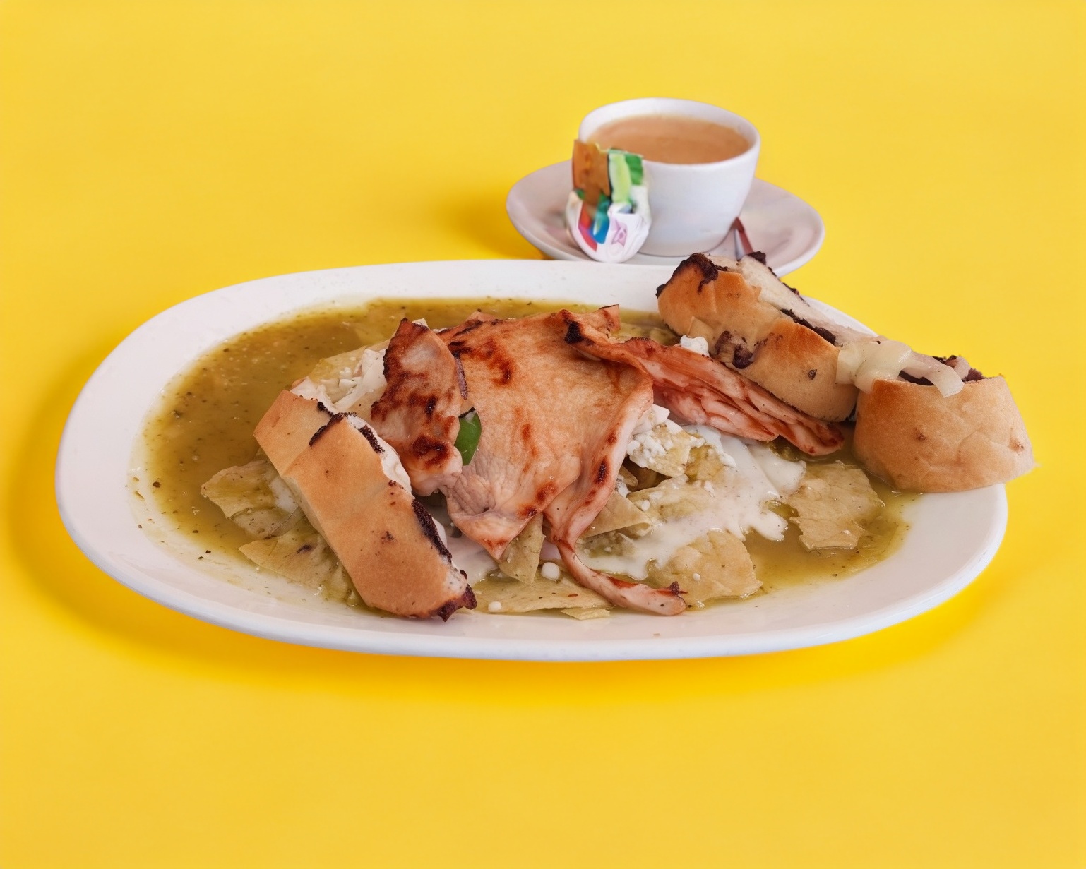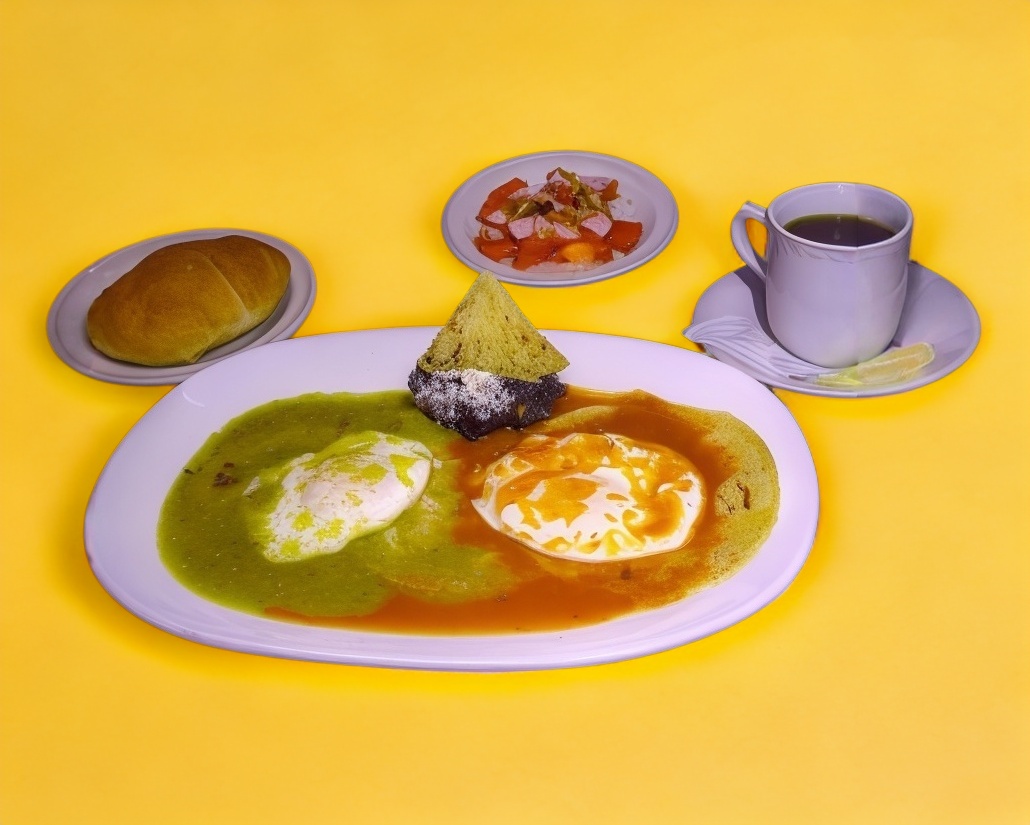 Chilaquiles con Huevo*1 + Bebida*1 (Café ,te ) + Plato de Frutas*1 (30 gr ) + Pan Blanco*1