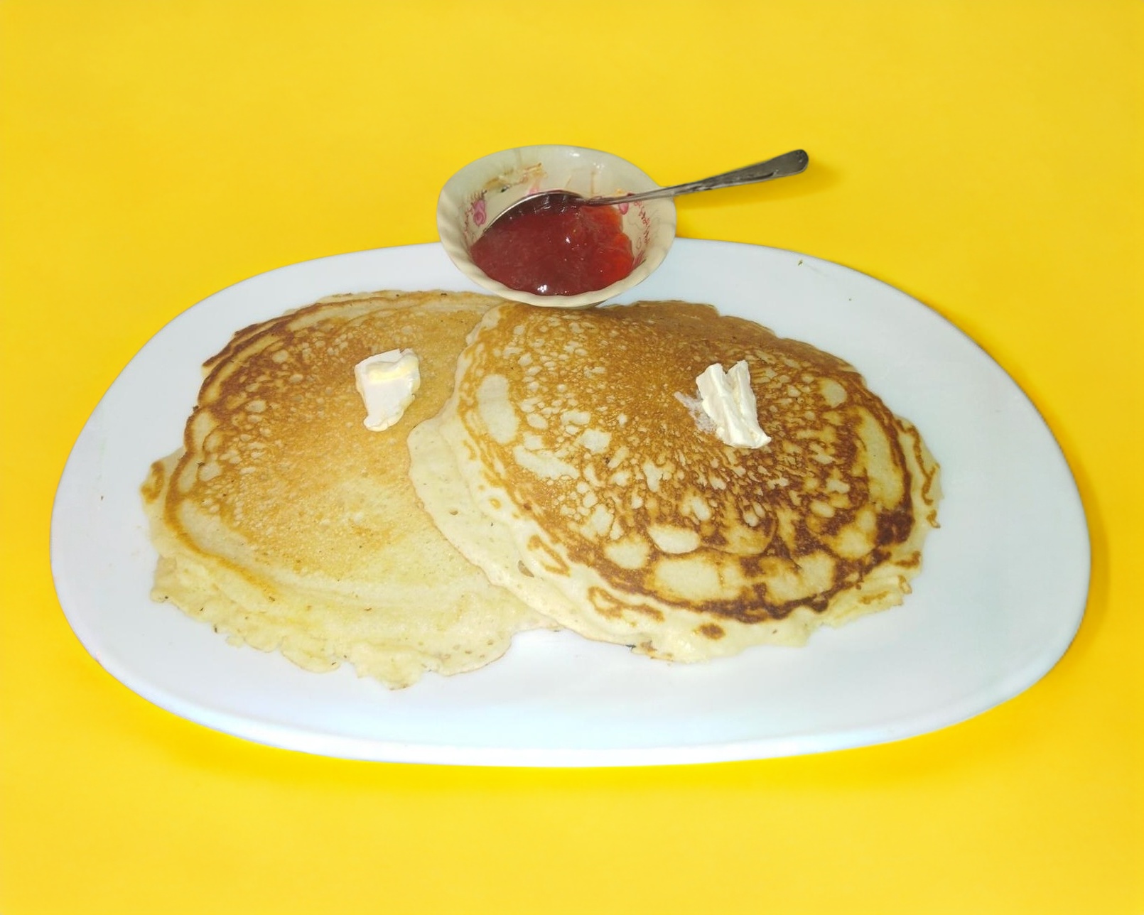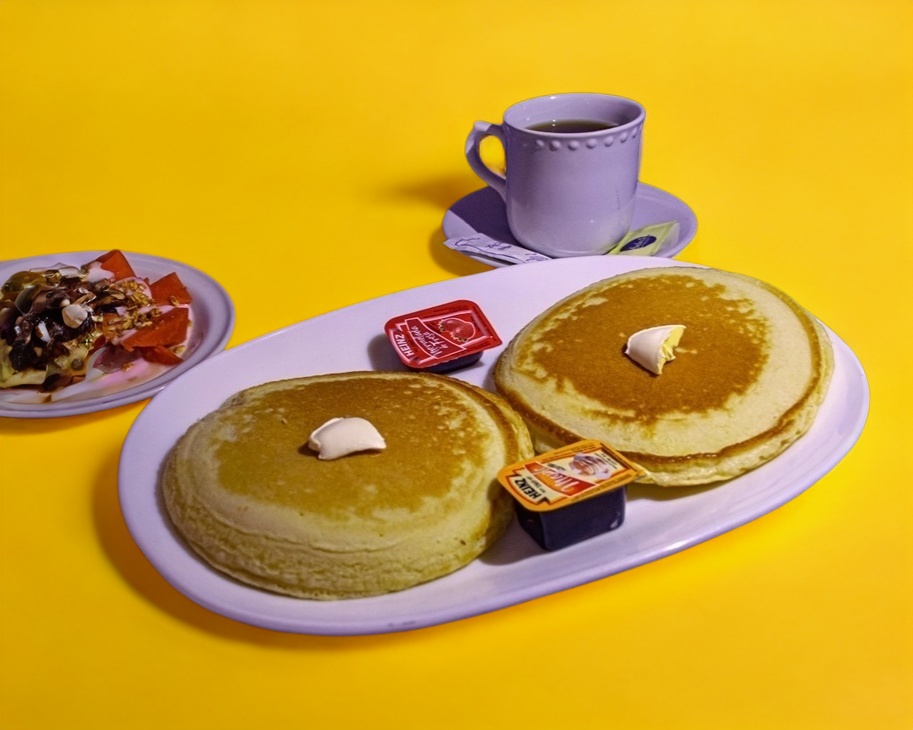 Hot cakes (2 piezas) acompañados con mermelada de fresa o miel maple.