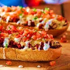 Pan con Frijoles untados jamón o chorizo o tocino gratinados con queso manchego